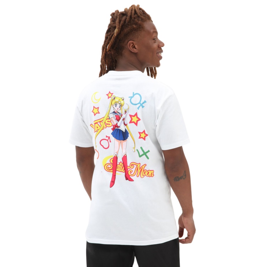 φορτηγά και όμορφος φύλακας Sailor Moon έχουν έρθει μαζί για μια ειδική συνεργασία που γιορτάζει την αγάπη και τη δικαιοσύνη για όλους. αυτή η συλλογή παπουτσιών και ενδυμάτων σας προσκαλεί να συνεργαστείτε με τους φύλακες του ναυτικού και να τιμήσετε το δημοφιλές Anime.με τα έργα τέχνης του Sailor Moon στο πίσω μέρος, το γραφικό μπλουζάκι Vans X Beautiful Guardian Sailor Moon φέρνει τη διασκέδαση του εμβληματικού σόου στην καθημερινότητά σας ντουλάπα με βαρύτερο λαναρισμένο βαμβάκι. ένα αριστερό λογότυπο στο στήθος προσθέτει στην πολύχρωμη εμφάνιση αυτού του κοντομάνικου μπλουζάκι.