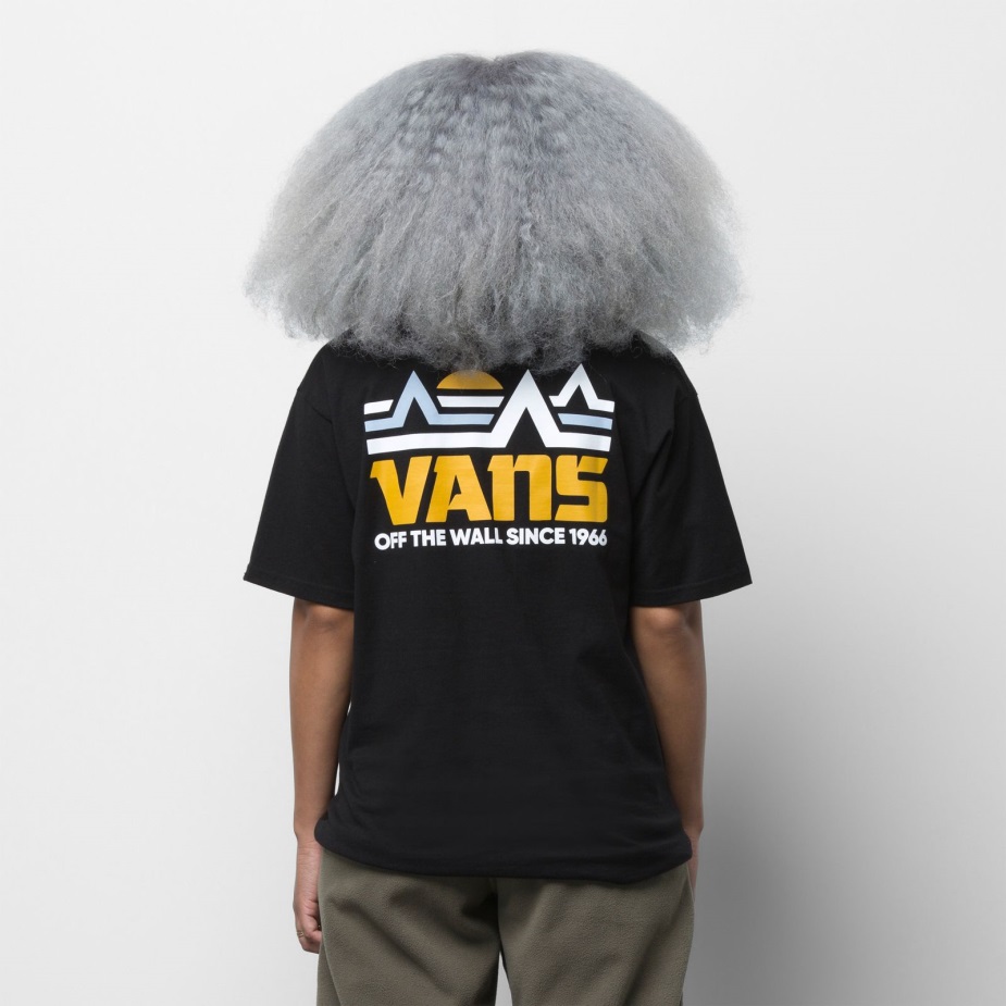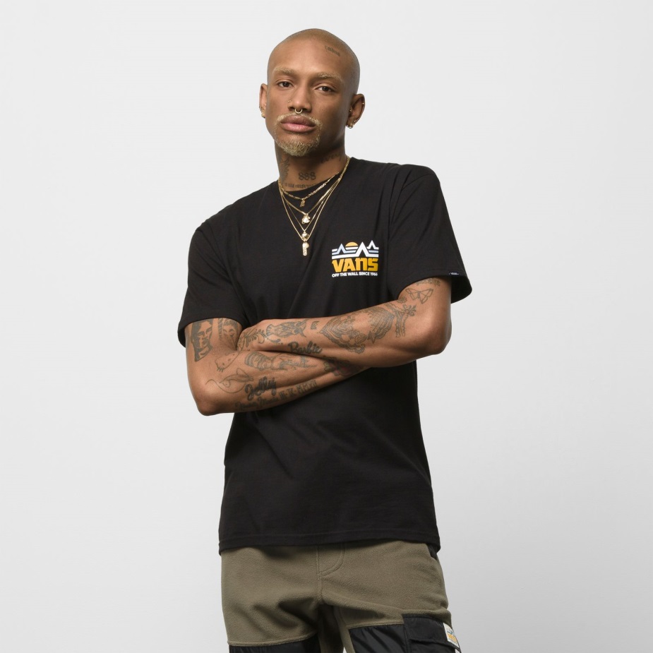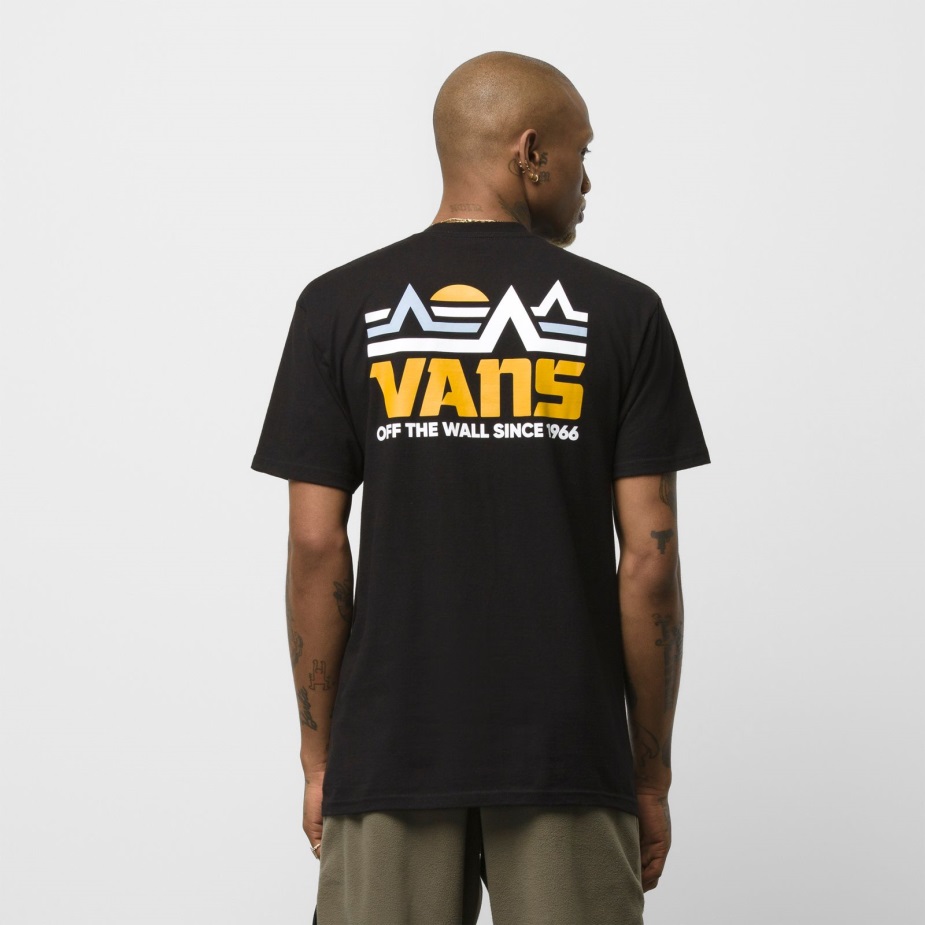 το Mt. Το T-shirt Vans είναι ένα βαρύτερου βάρους 100% λαναρισμένο βαμβακερό μπλουζάκι με κοντό μανίκι και αφηρημένα γραφικά με λογότυπο οροσειράς στο αριστερό στήθος και την πλάτη. τύπος εφαρμογής: κλασικό. Το μοντέλο έχει ύψος 6 πόδια και φοράει μεσαίο μέγεθος.