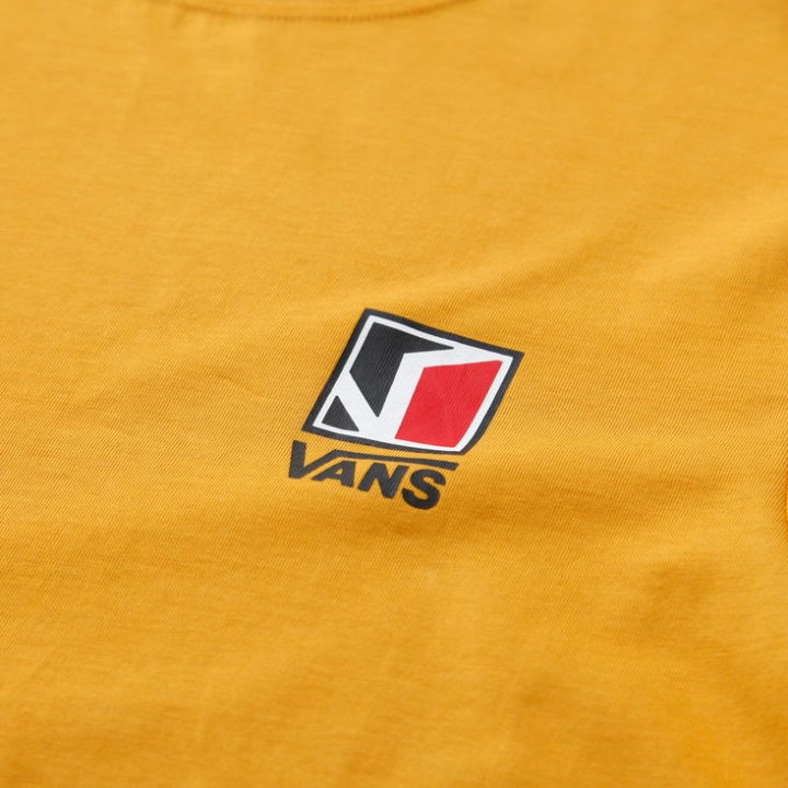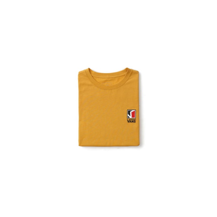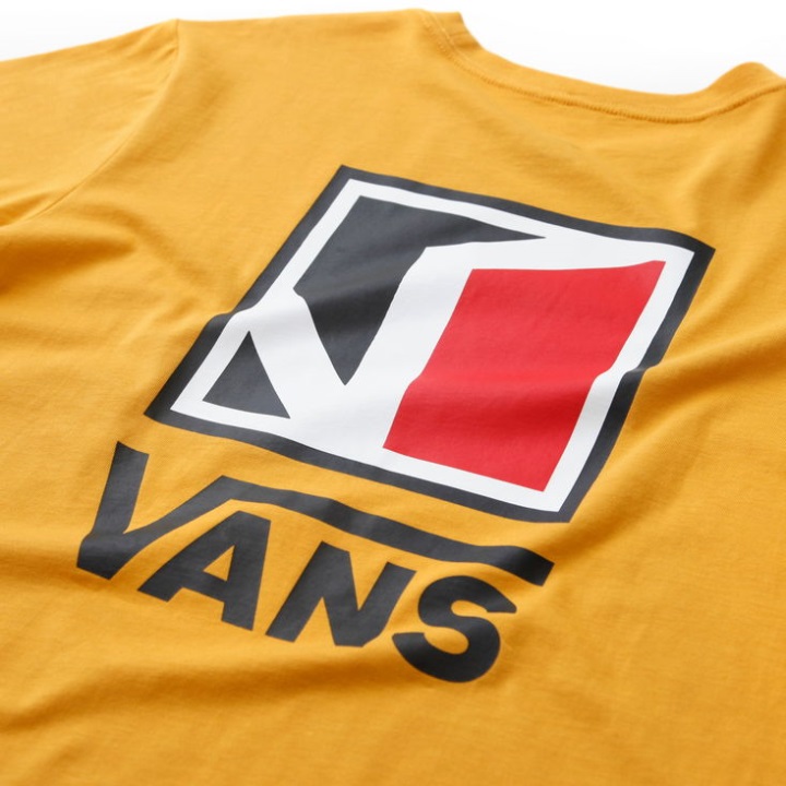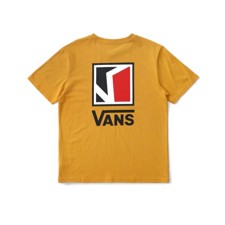 το επάνω μπλουζάκι είναι ένα ανδρικό μπλουζάκι από 100% βαμβάκι σε σχέδιο λογότυπου βαν από το κουτί. διαθέσιμο σε μαύρο, ορυκτό κίτρινο και λευκό.