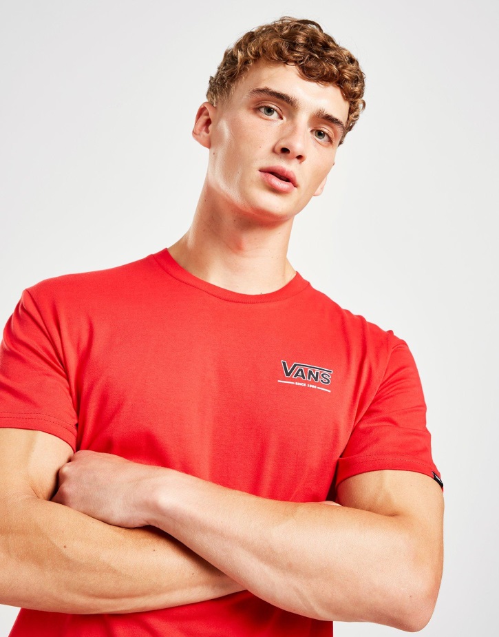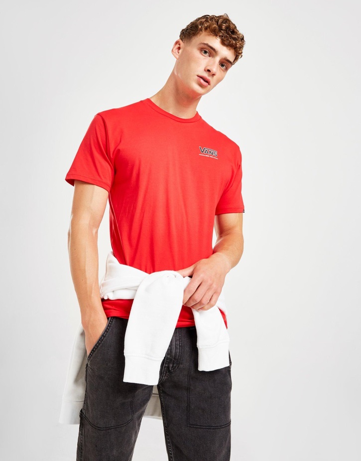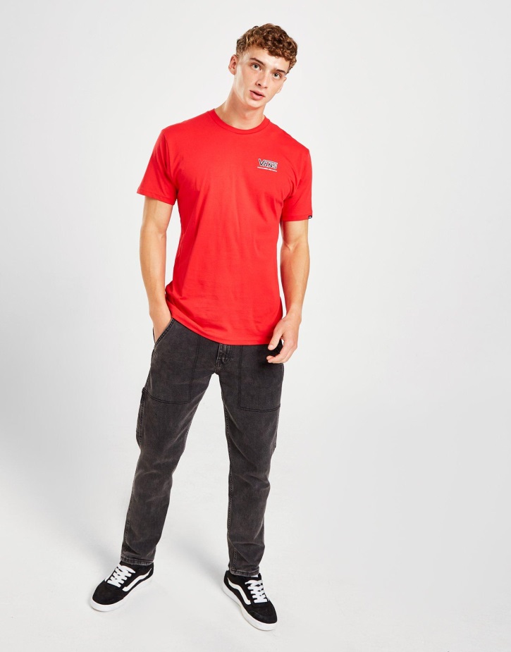 αναβαθμίστε την εμφάνισή σας με αυτό το ανδρικό σκίτσο μπλουζάκι από βαν. αποκλειστικά για Jd, αυτό το μπλουζάκι με κανονική εφαρμογή είναι κατασκευασμένο από βαμβακερό ύφασμα που είναι ελαφρύ και απαλό για άνεση όλη μέρα. σε κόκκινο χρώμα, διαθέτει λαιμόκοψη με κοντό μανίκι για κλασικό κόψιμο και επώνυμα γραφικά με το διάσημο σχέδιο σκακιέρας των βαν. τελείωσε με το λογότυπο του φορτηγού στο στήθος. πλένεται στο πλυντήριο. | Το μοντέλο μας είναι 6'2" με στήθος 39" και φοράει μέγεθος Medium.care & Material100% Cottoncolour:red Product Code: 16571408/603173