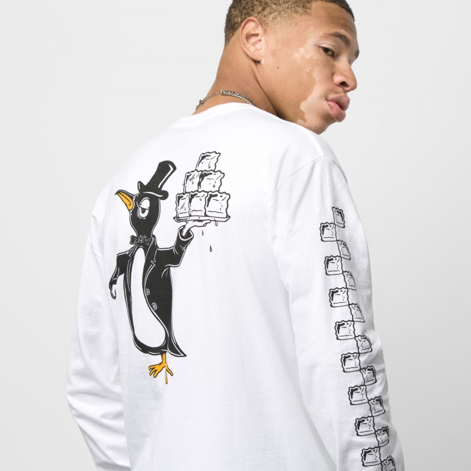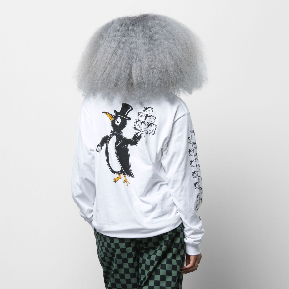 το μακρυμάνικο μπλουζάκι σκακιέρας έρευνας είναι ένα 100% λαναρισμένο βαμβακερό μπλουζάκι με δαχτυλίδια με κλασικό λογότυπο στο αριστερό στήθος, γραφικά πιγκουίνου στο πίσω μέρος και μια στροφή στην εμβληματική στάμπα σκακιέρας στο δεξί μανίκι. Το μοντέλο έχει ύψος 6 πόδια και φοράει μεσαίο μέγεθος.