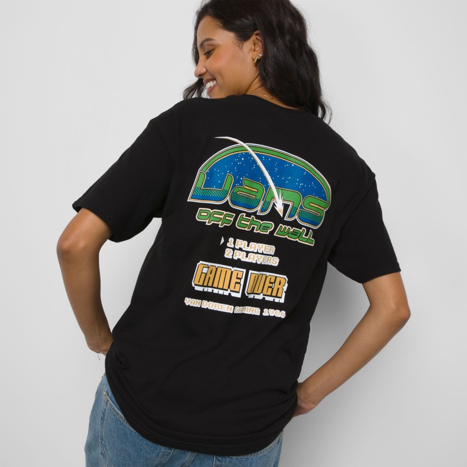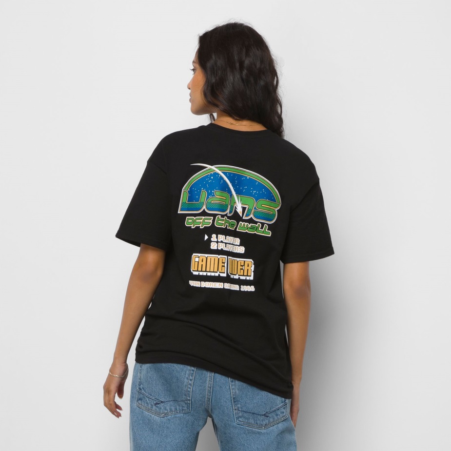 εμπνευσμένο από ρετρό στοές, το ψηφιακά δωρεάν μπλουζάκι γιορτάζει τα παλιά σχολικά βιντεοπαιχνίδια με γραφικά με λογότυπο που θυμίζουν αρχική οθόνη και παραδοσιακό βαρύτερο βαμβάκι. πατήστε Start για στυλ "εκτός τοίχου".