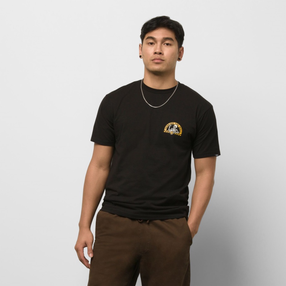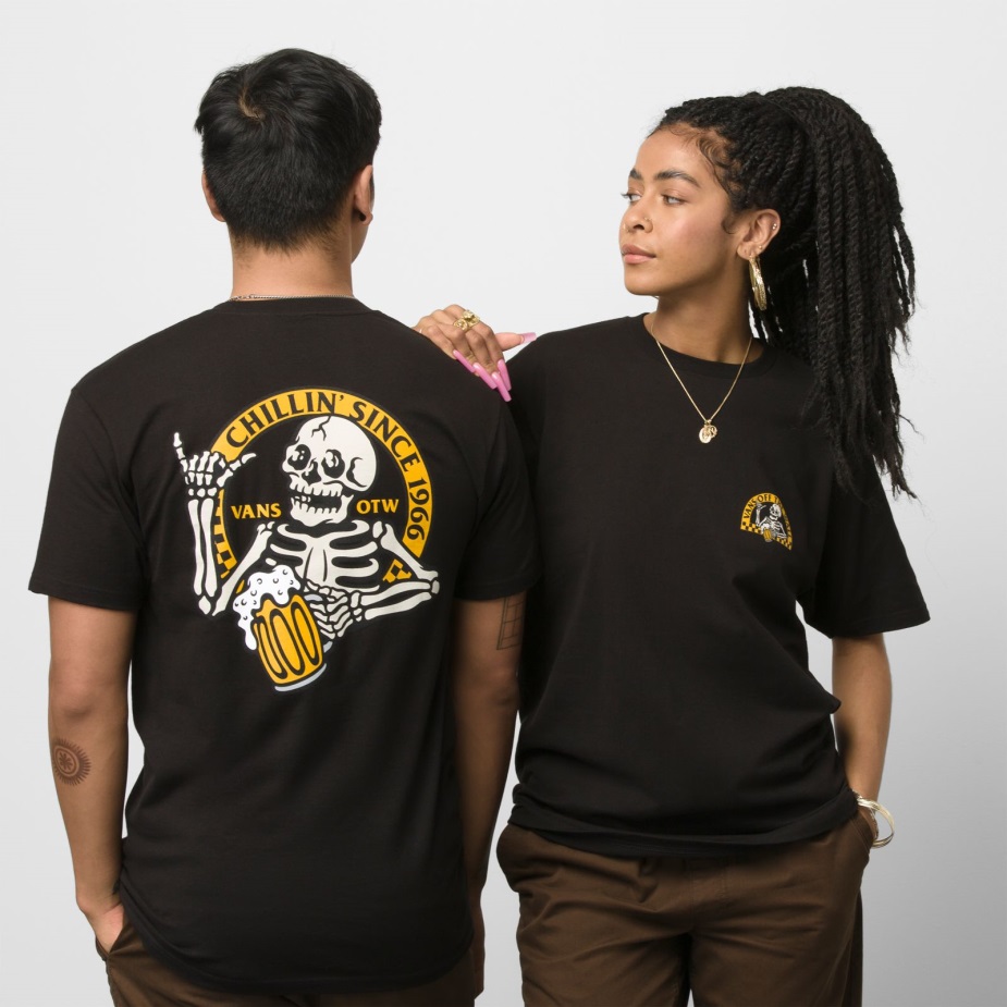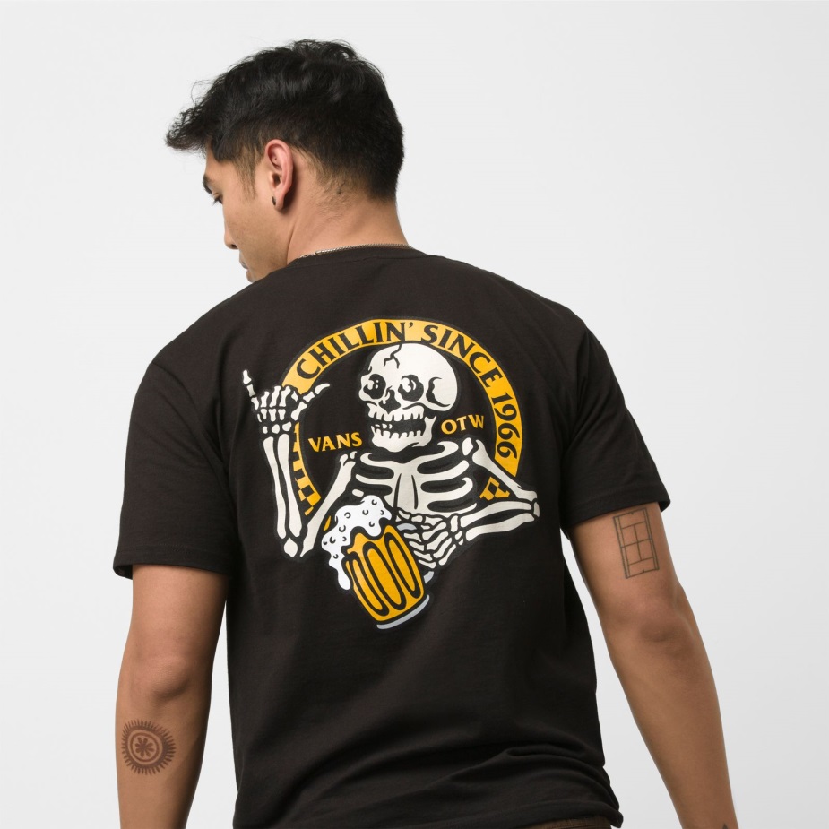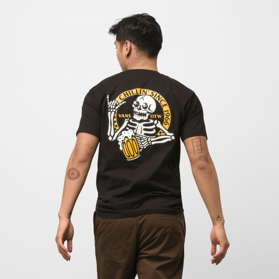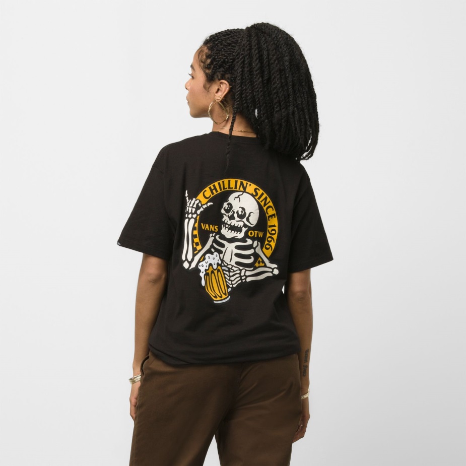 Ένας σκελετός γυρίζει πίσω με έναν κρύο στο αριστερό στήθος και στο πίσω μέρος του τσίλι από 66 T-shirt, ένα βαρύτερου βάρους 100% λαναρισμένο βαμβακερό μπλουζάκι με κοντά μανίκια. τύπος εφαρμογής: κλασικό. Το μοντέλο έχει ύψος 6 πόδια και φοράει μεσαίο μέγεθος.