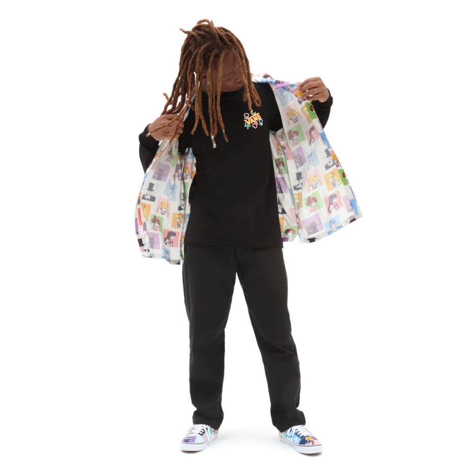 φορτηγά και όμορφος φύλακας Sailor Moon έχουν έρθει μαζί για μια ειδική συνεργασία που γιορτάζει την αγάπη και τη δικαιοσύνη για όλους. Αυτή η συλλογή παπουτσιών και ενδυμάτων σας προσκαλεί να συνεργαστείτε με τους φύλακες των ναυτών και να τιμήσετε το δημοφιλές Anime. Το γραφικό μπλουζάκι με μακρυμάνικο μπλουζάκι Vans X Beautiful Guardian Sailor Moon φέρνει τη διασκέδαση του εμβληματικού σόου στην καθημερινή σας γκαρνταρόμπα. έχει λαιμόκοψη πληρώματος, λογότυπο φορτηγών στο αριστερό στήθος και γραφικά Sailor Moon στο πίσω μέρος.