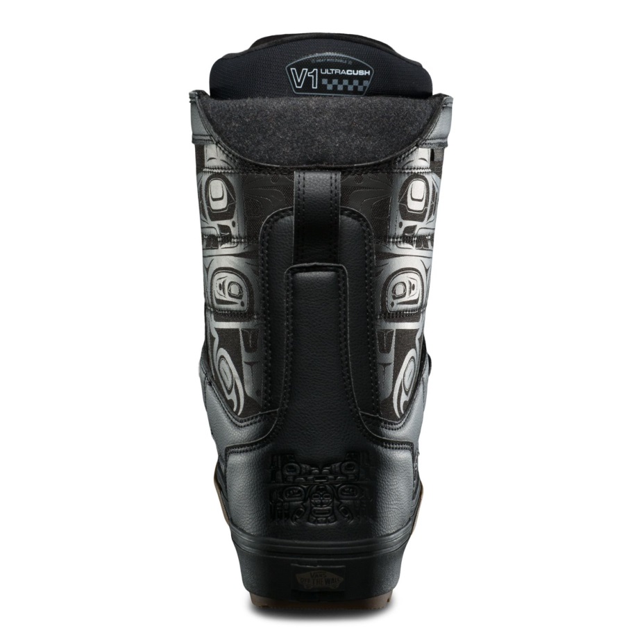 Ο Τζέιμς Τζόνσον δεν είναι μόνο ένας δια βίου τεμαχιστής και διαρκής συνεισφέρων στην κοινότητα του Snowboard, είναι επίσης ένας βραβευμένος καλλιτέχνης και χαράκτης. Γεννημένος και μεγαλωμένος στο Τζούνο της Αλάσκας, ο Τζέιμς ανήκει στη φυλή Tlingit Ch'áak' Dakl'aweidi [φάλαινα δολοφόνος αετών] και η ισχυρή, παραδοσιακή γηγενής ιστορία του τον οδήγησε να ακολουθήσει τη μορφή τέχνης Tlingit για να τιμήσει τους προγόνους του μέσω της δουλειάς του. η ιστορία και η τέχνη που μοιράζεται ο Τζέιμς για τη μοναδική του στο είδος συλλογή βαν είναι αυτή του κορακιού που φέρνει φως στον κόσμο. Στην ιστορία, το κοράκι κλέβει τον ήλιο από ένα κουτί και τον πετάει επάνω μέσα από τον καπνό και το σκοτάδι για να τον απελευθερώσει στον ουρανό, φωτίζοντας τον κόσμο. Η επιλογή των χρωμάτων για το έργο αντιπροσωπεύει το Tlingit Tináa, το οποίο ήταν φτιαγμένο από χαλκό και σύμβολο πλούτου και θέσης. Συνδυάζοντας το έργο τέχνης του Τζέιμς με τις μπότες βαν με τις μεγαλύτερες πωλήσεις όλων των εποχών, το υψηλής ποιότητας Og συνεχίζει να είναι ο σημαιοφόρος του κλασικού στυλ και της μοντέρνας απόδοσης. Η άνεση και η οικεία αίσθηση ενός παραδοσιακού κλεισίματος με κορδόνια κερδίζει πρόσθετη υποστήριξη από βασικά χαρακτηριστικά, όπως το κλείδωμα με κορδόνια και η εσωτερική ζώνη ιστού. με την εξωτερική σόλα με βάφλα V1 και την εμβληματική πλαϊνή λωρίδα, αυτό το διαχρονικό στυλ Vans μιλάει από μόνο του.