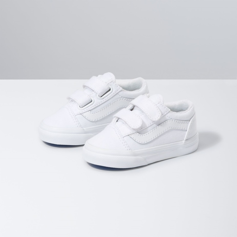 το Toddler Old Skool V, εμπνευσμένο από το κλασικό παπούτσι για Skate Vans, διαθέτει σιλουέτα χαμηλού προφίλ με στιβαρό επάνω μέρος από καμβά και σουέτ, κλείσιμο με γάντζο και θηλιά, επενδυμένους γιακά για στήριξη και ευελιξία και χαρακτηριστικές εξωτερικές σόλες από καουτσούκ βάφλα.