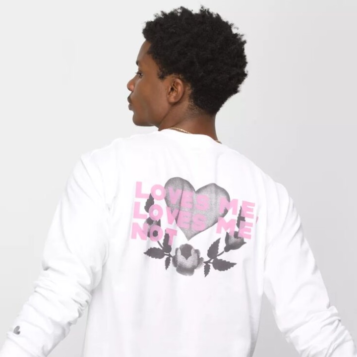 Με γραφικά εμπνευσμένα από το παιχνίδι της παιδικής ηλικίας, το μπλουζάκι Love Me Not είναι ένα βαρύτερου βάρους 100% λαναρισμένο βαμβακερό μπλουζάκι με μακριά μανίκια και γραφικά μπροστά και πίσω. τύπος εφαρμογής: κλασικό. Το μοντέλο έχει ύψος 6 πόδια και φοράει μεσαίο μέγεθος.