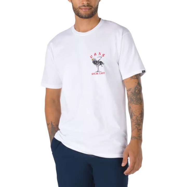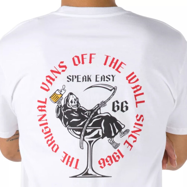 Το T-shirt Speak Easy είναι ένα βαρύτερο, 100% λαναρισμένο βαμβακερό μπλουζάκι με δαχτυλίδια με κοντά μανίκια και ζοφερά γραφικά στο στήθος. τύπος εφαρμογής: κλασικό. Το μοντέλο έχει ύψος 6 πόδια και φοράει μεσαίο μέγεθος.