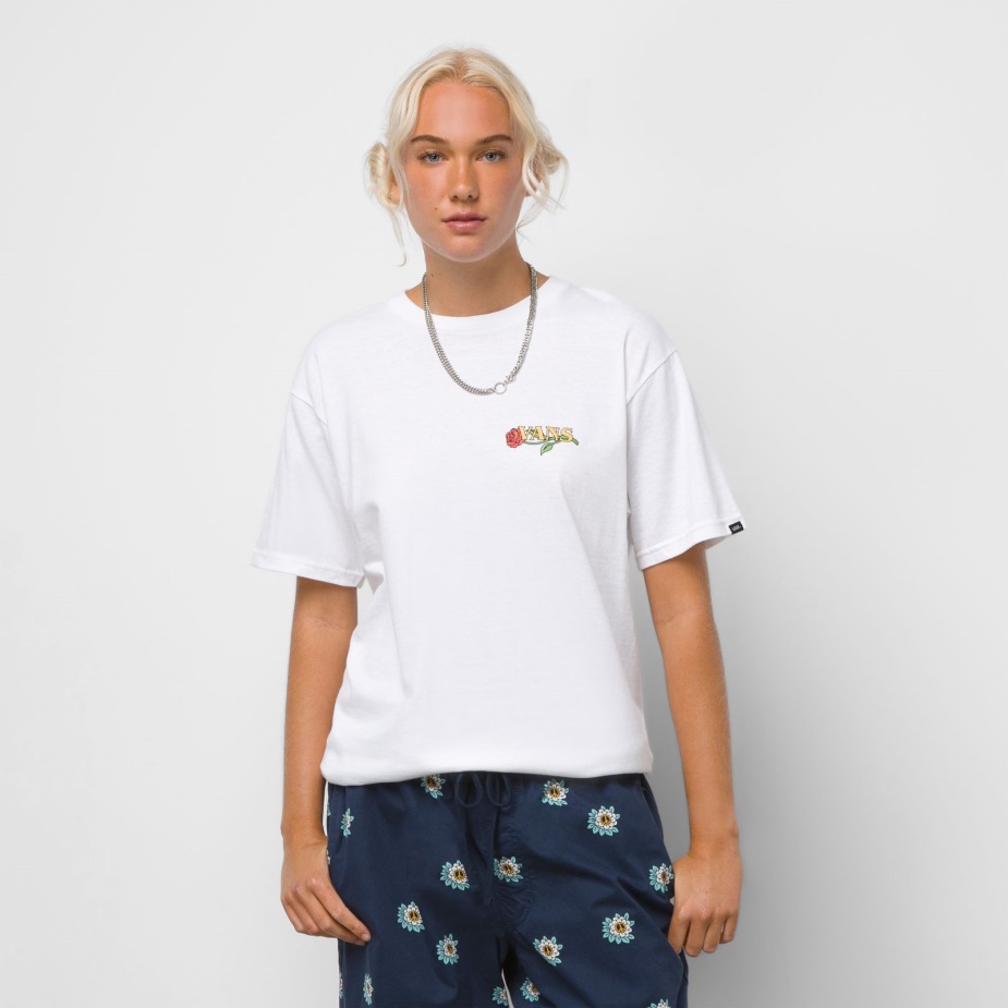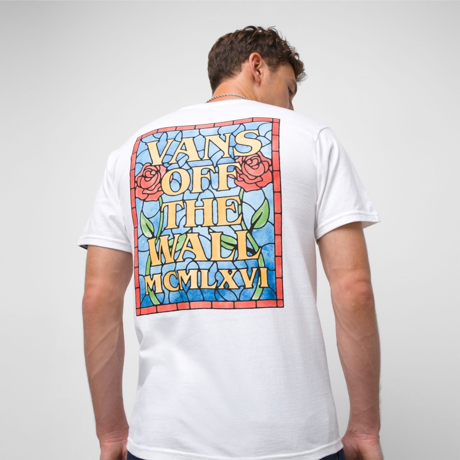που θυμίζει παραμύθια, η λεκιασμένη μπλούζα διαμορφώνει το λογότυπό μας σε μια σκηνή από βιτρό γεμάτη τριαντάφυλλα. Τα γραφικά εμφανίζονται στο αριστερό στήθος και στο πίσω μέρος αυτού του κοντομάνικο μπλουζάκι από βαρύτερο βαμβάκι.