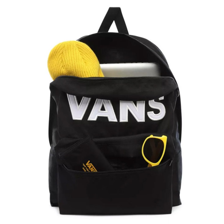 το παλιό σακίδιο Skool είναι ένα σακίδιο πλάτης από 100% πολυεστέρα που διαθέτει μια μεγάλη κύρια θήκη με θήκη για φορητό υπολογιστή (ταιριάζει στους περισσότερους φορητούς υπολογιστές 15 ιντσών), μπροστινή τσέπη με φερμουάρ με Organizer για γρήγορη πρόσβαση και ιμάντες ώμου με επένδυση σε ευθεία κοπή. διαστάσεων 16,5 L X 12,75 W X 4,75 D ίντσες, έχει χωρητικότητα 22 λίτρων.