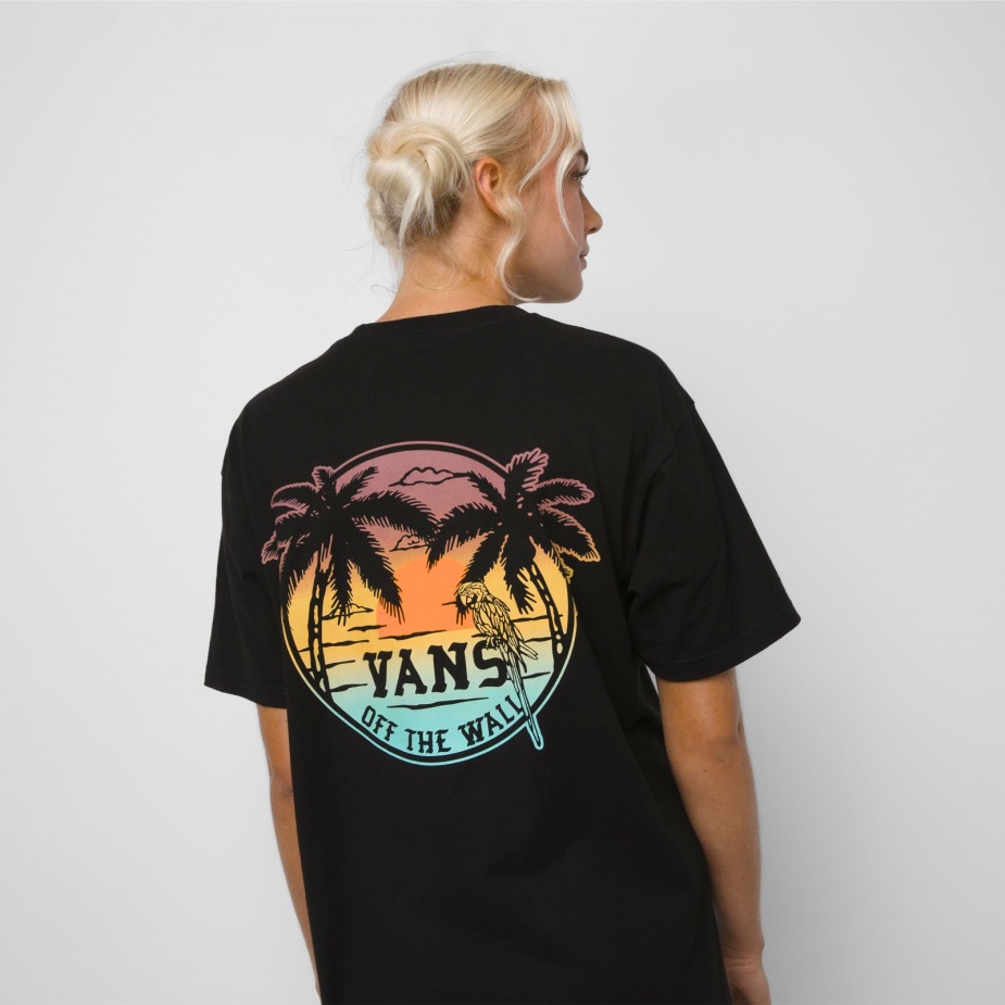 t-shirt με γραφικά για ηλιοβασίλεμα έτοιμα για διακοπές και με τις εικονικές διπλές παλάμες μας.