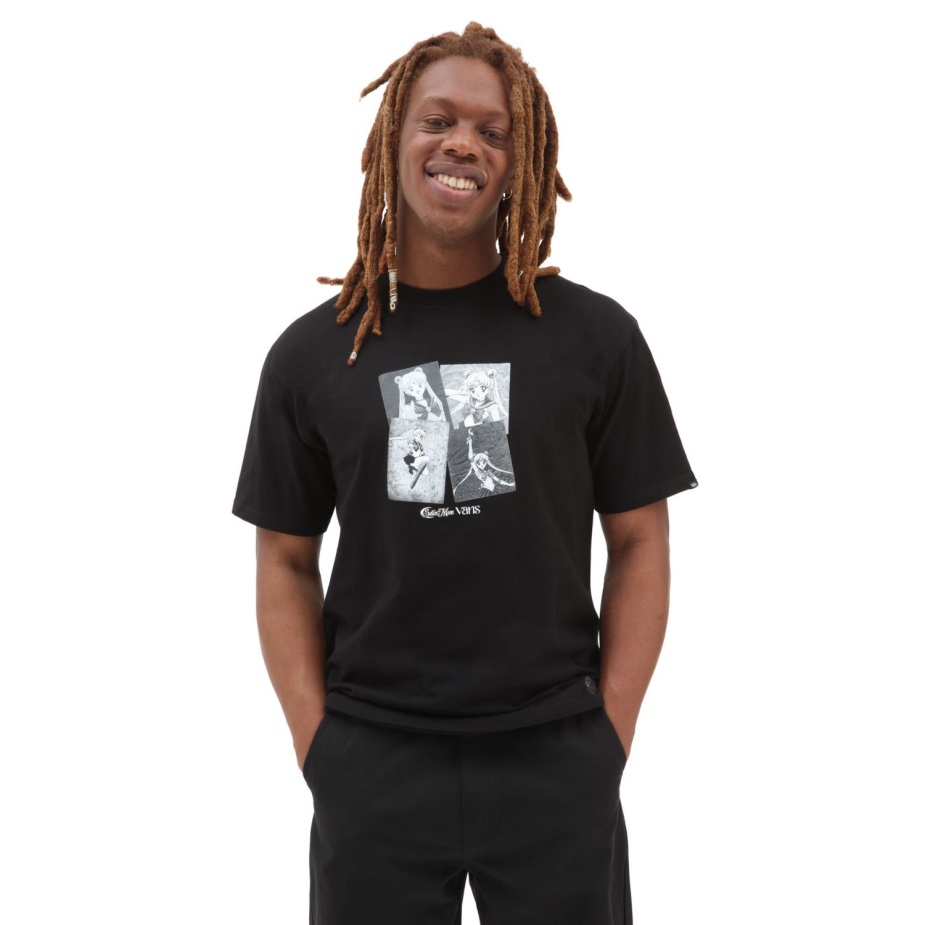 φορτηγά και όμορφος φύλακας Sailor Moon έχουν έρθει μαζί για μια ειδική συνεργασία που γιορτάζει την αγάπη και τη δικαιοσύνη για όλους. αυτή η συλλογή παπουτσιών και ενδυμάτων σας προσκαλεί να συνεργαστείτε με τους Sailor Guardians και να τιμήσετε το δημοφιλές Anime.με ένα κολάζ στο κέντρο μπροστινό μέρος που απεικονίζει μερικές από τις πόζες του Sailor Moon, το Vans X Beautiful Guardian Sailor Moon Graphic Skate φέρνει τη διασκέδαση του εμβληματική επίδειξη στην καθημερινή σας γκαρνταρόμπα. αυτό το ασπρόμαυρο μπλουζάκι έχει κοντά μανίκια και είναι φτιαγμένο από 100% βαμβάκι.