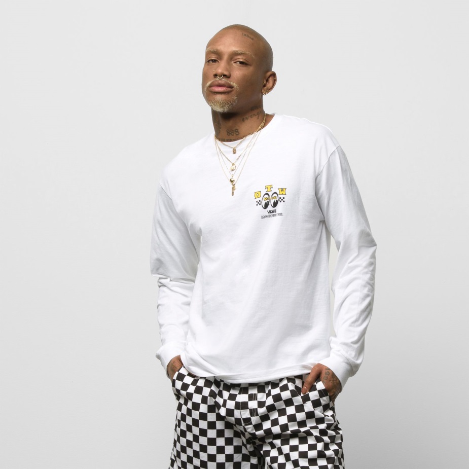 αποτίοντας φόρο τιμής στις ιστορικές ιστορίες τόσο των Vans όσο και των Mooneyes, το μακρυμάνικο μπλουζάκι Mooneyes συνδυάζει εμβληματική επωνυμία και από τις δύο εταιρείες με βαρύ λαναρισμένο βαμβάκι για ένα μακρυμάνικο μπλουζάκι που αντέχει στο χρόνο. τύπος εφαρμογής: κλασικό. Το μοντέλο έχει ύψος 6 πόδια και φοράει μεσαίο μέγεθος.