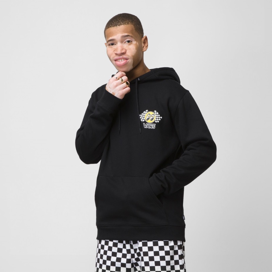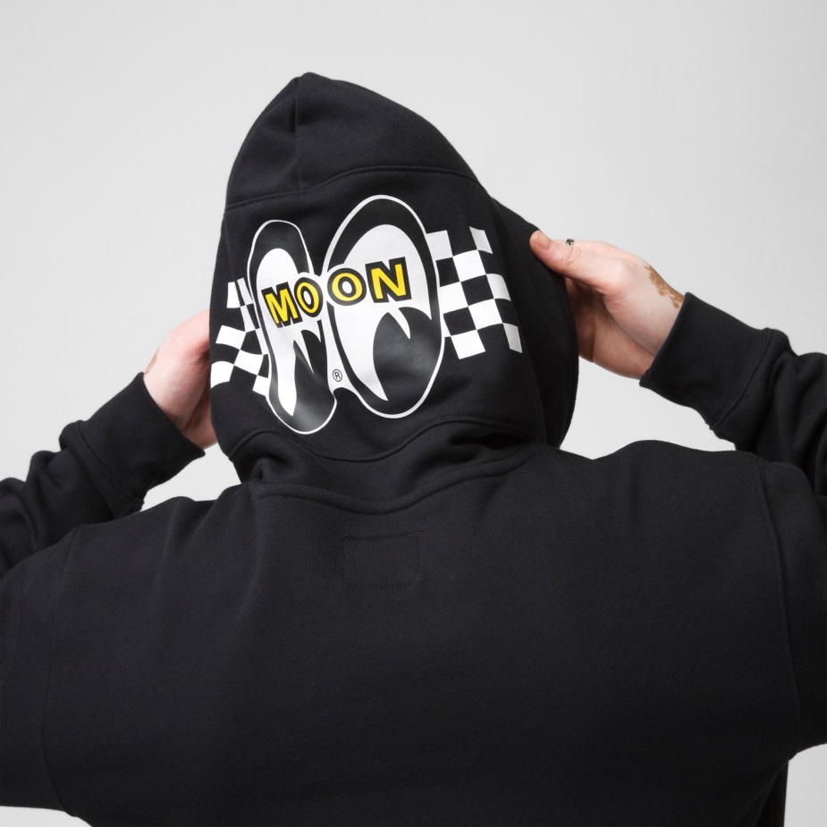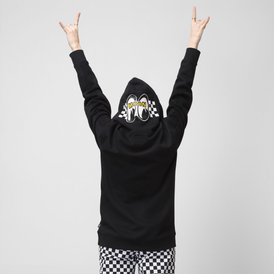 αποτίοντας φόρο τιμής στις ιστορικές ιστορίες τόσο των Vans όσο και των Mooneyes, το φλις πουλόβερ Mooneyes συνδυάζει εμβληματική επωνυμία και από τις δύο εταιρείες με άνετο φλις και κλασικό στυλ Hoodie. Το μοντέλο έχει ύψος 6 πόδια και φοράει μεσαίο μέγεθος.