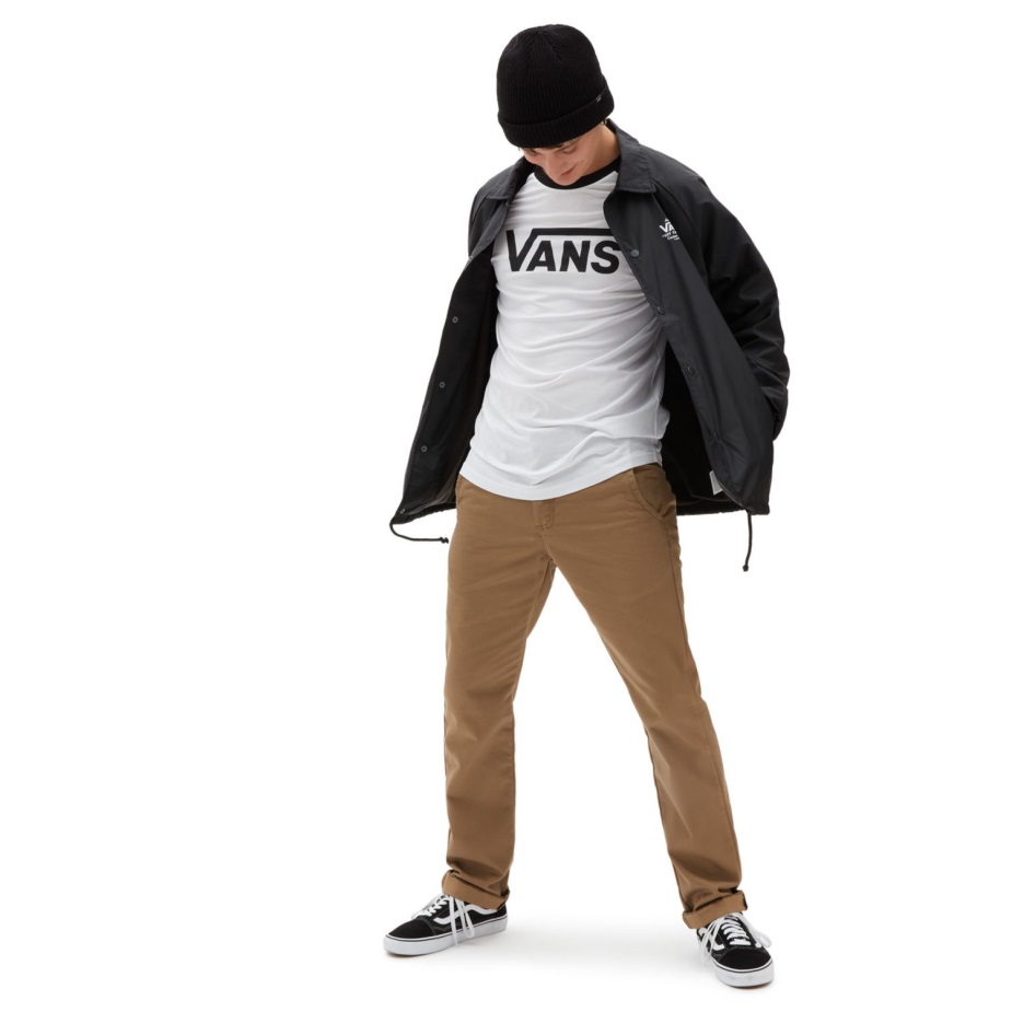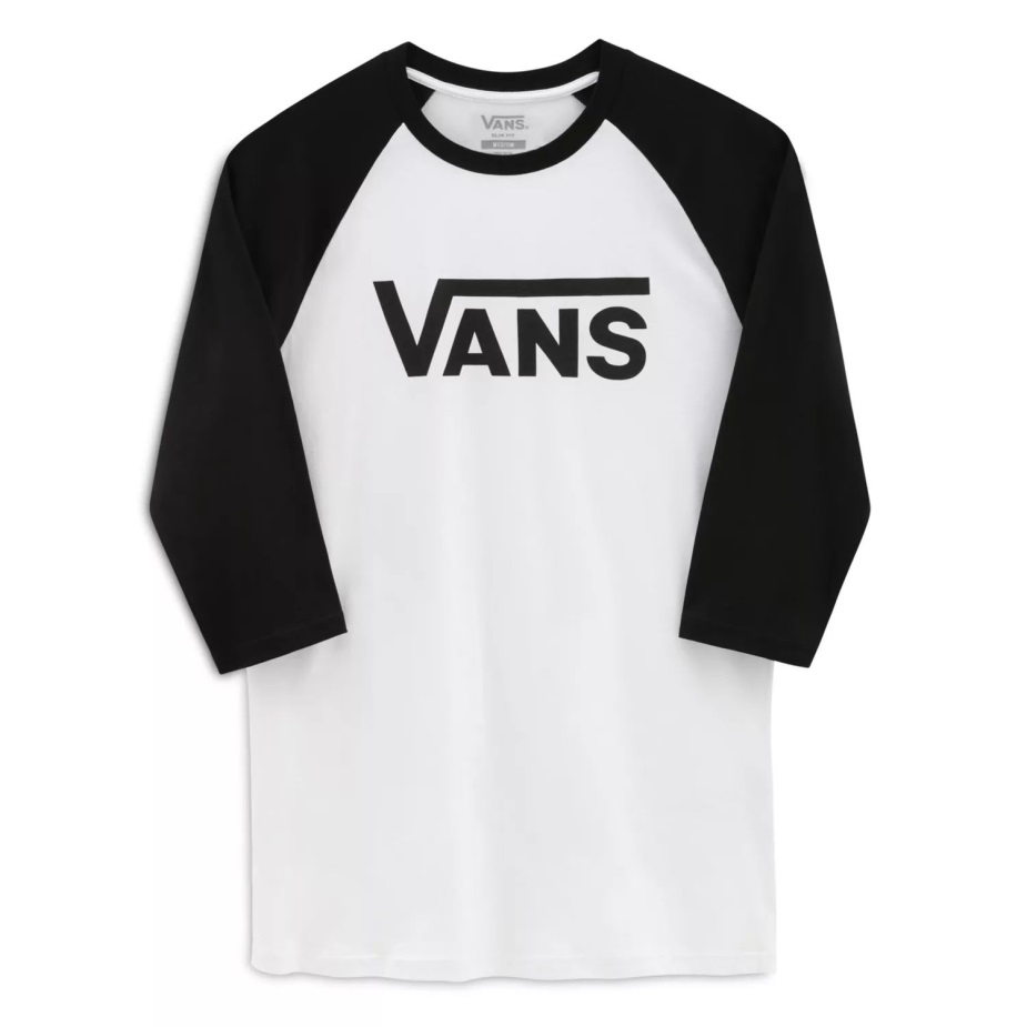 το κλασικό μπλουζάκι ρεγκλάν Vans είναι ένα 100% χτενισμένο μπλουζάκι ρεγκλάν από βαμβακερό δακτύλιο με μανίκια τρία τέταρτα και γραφικά με λογότυπο στο μπροστινό μέρος. τύπος προσαρμογής: προσαρμοσμένο. Το μοντέλο έχει ύψος 6 πόδια και φοράει μεσαίο μέγεθος.