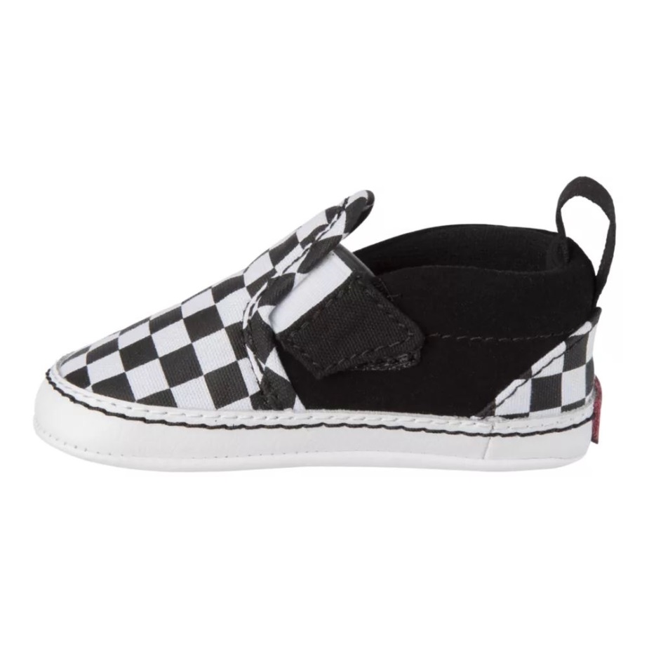 η κούνια Slip-on V, επανασχεδιασμένη για τέλεια εφαρμογή στο στυλ της αρχικής Slip-on, διαθέτει σουέτ και υφασμάτινο επάνω μέρος, ελαστικές πλευρικές πινελιές και έλξεις φτέρνας για εύκολη εφαρμογή. μια νέα στάμπα στην εξωτερική σόλα μιμείται την εμβληματική σόλα βάφλας Vans και η προσθήκη μιας ψώρας στη φτέρνα Vans ολοκληρώνει την κλασική εμφάνιση.