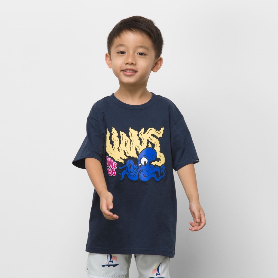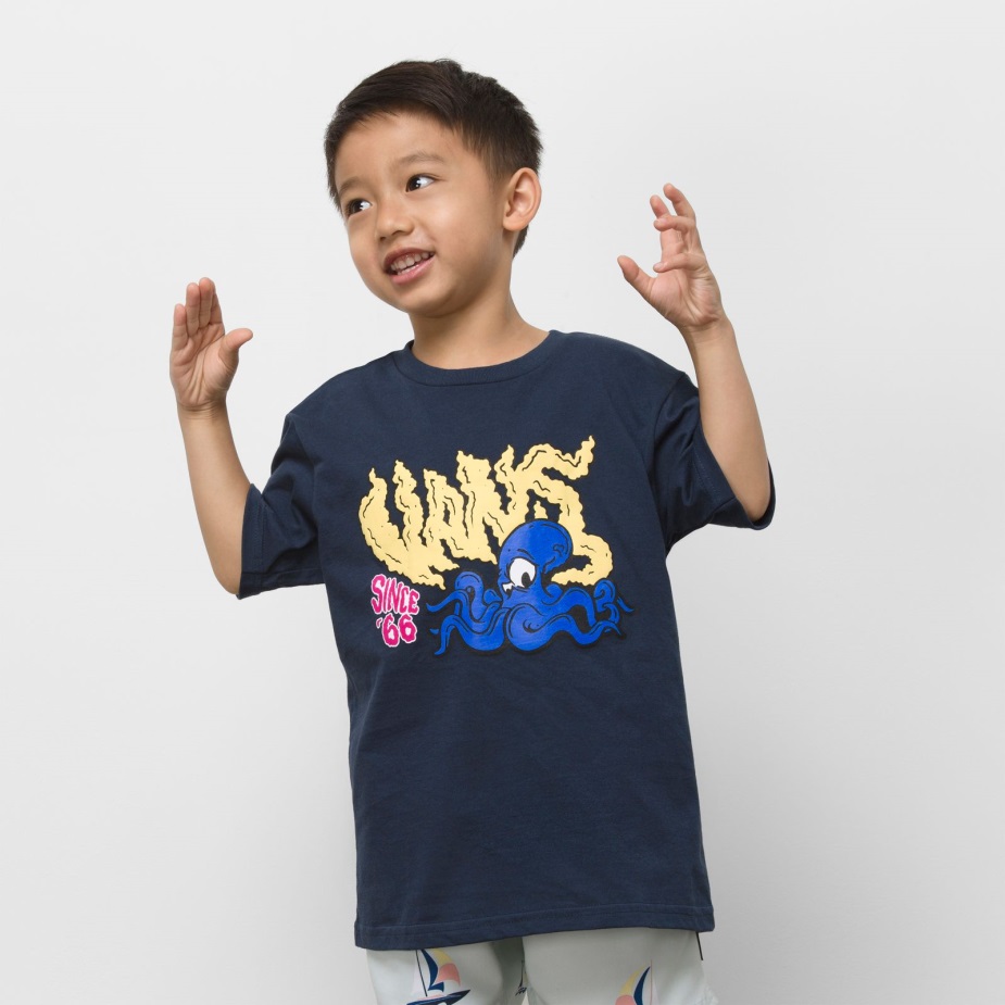 το παιδικό μπλουζάκι Octovans είναι ένα 100% χτενισμένο βαμβακερό μπλουζάκι με χτένισμα με κοντά μανίκια και γραφικά με λογότυπο χταπόδι μπροστά.