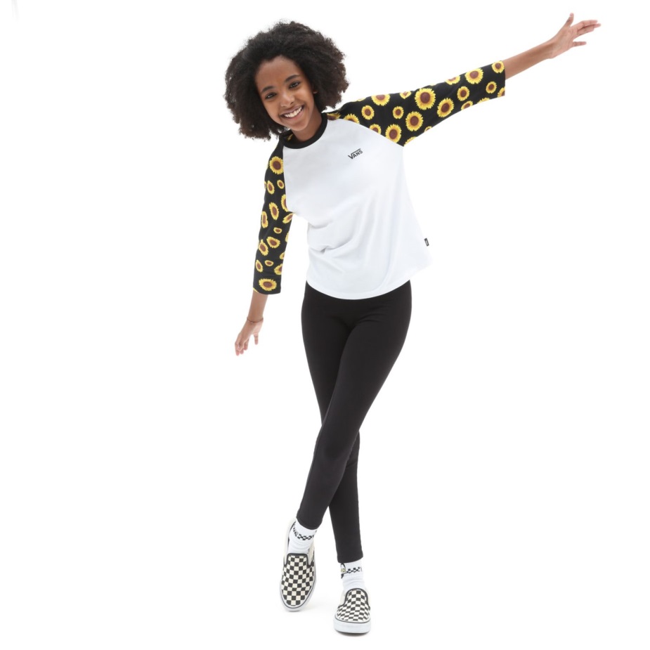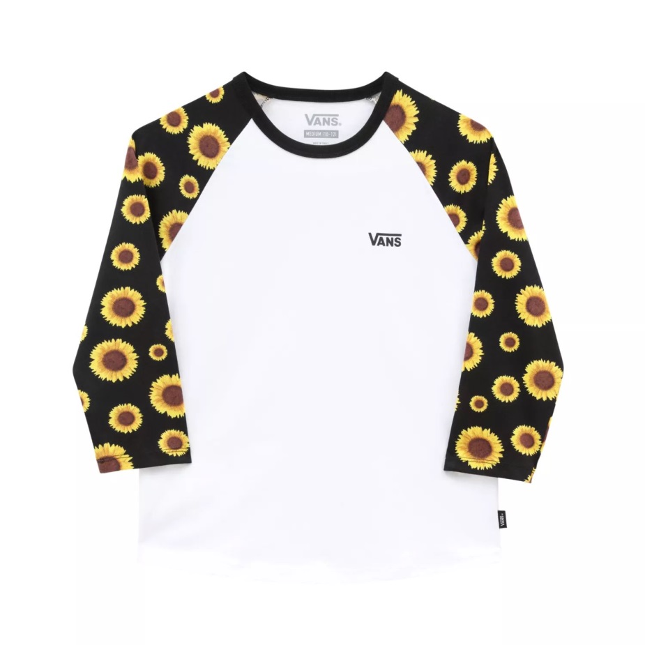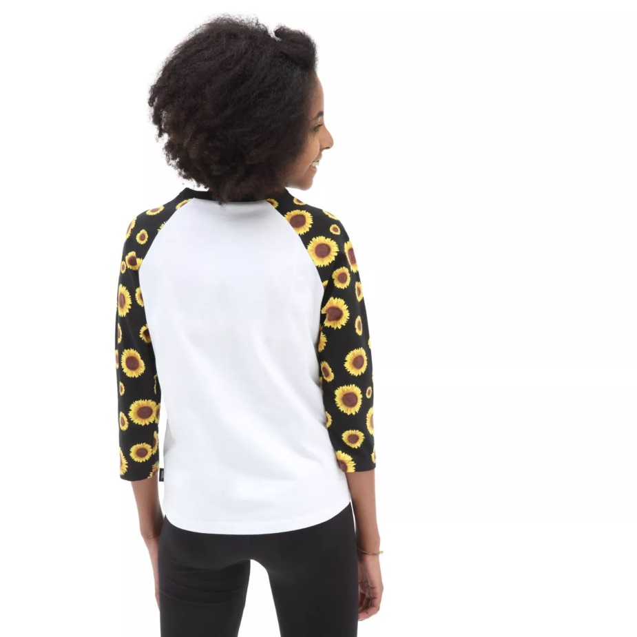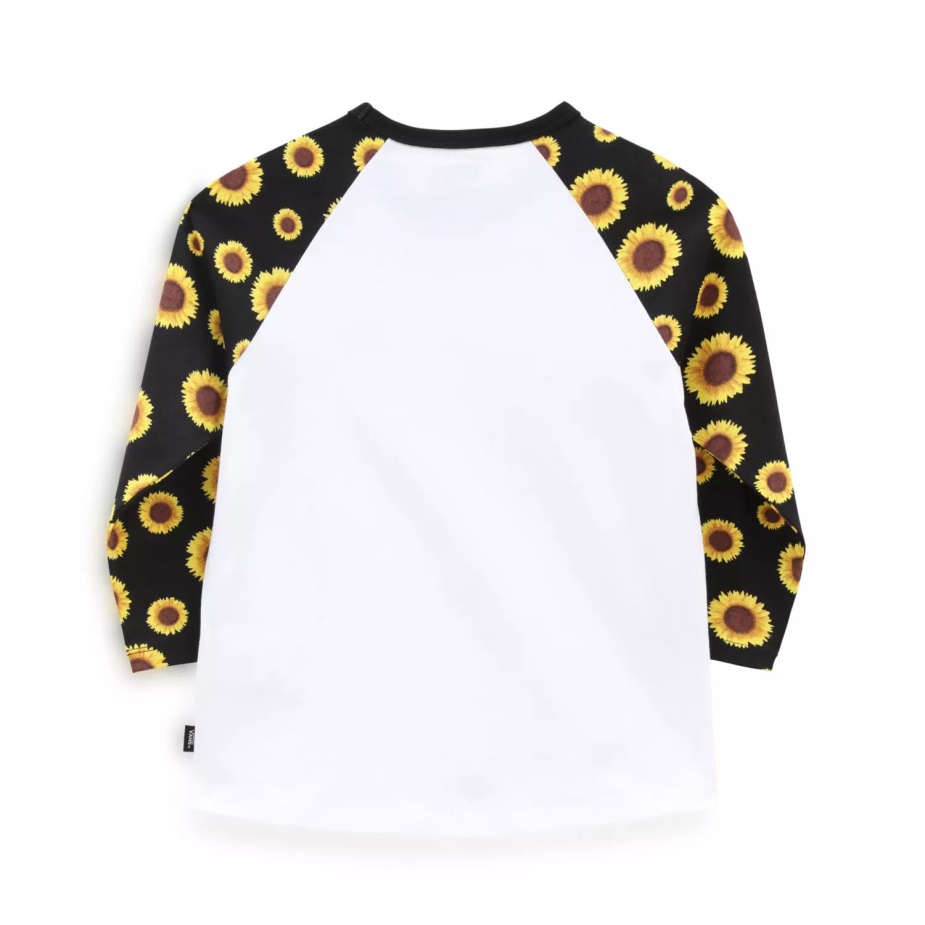 η ηλιόλουστη ρεγκλάν μπλούζα Vans Girls έχει μακριά μανίκια με ηλιοτρόπια, λαιμόκοψη και το λογότυπο Vans στο αριστερό στήθος και στο κάτω μέρος του σώματος.