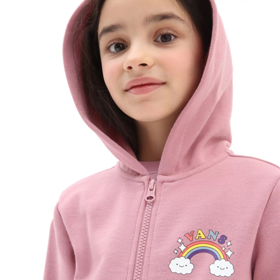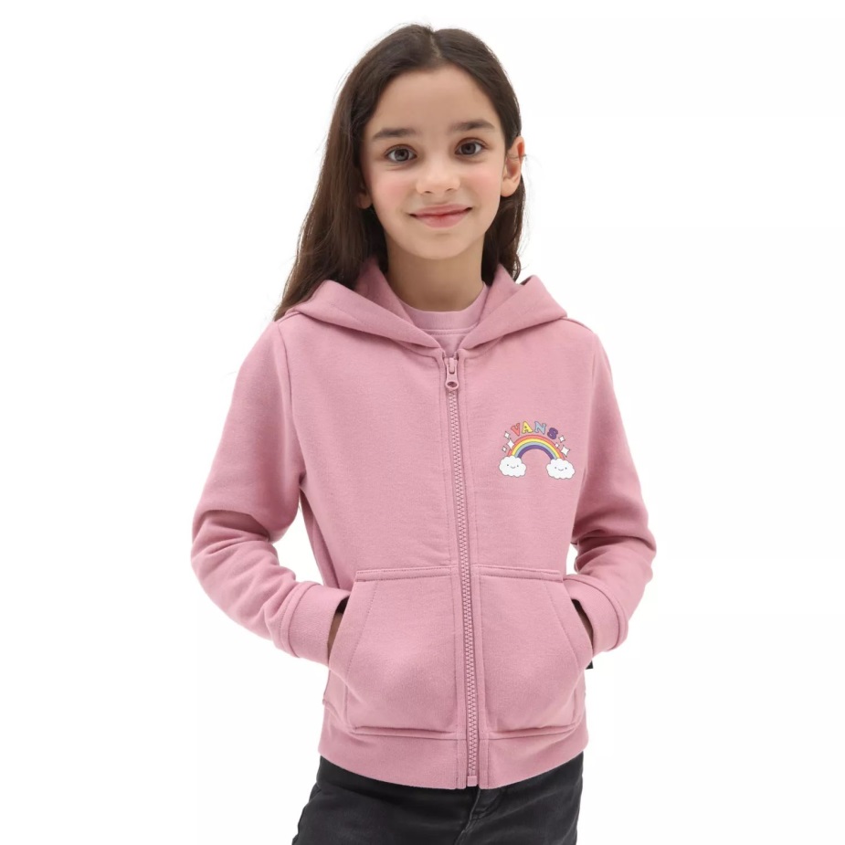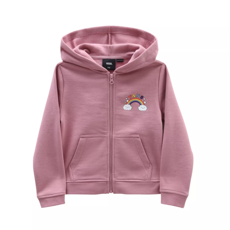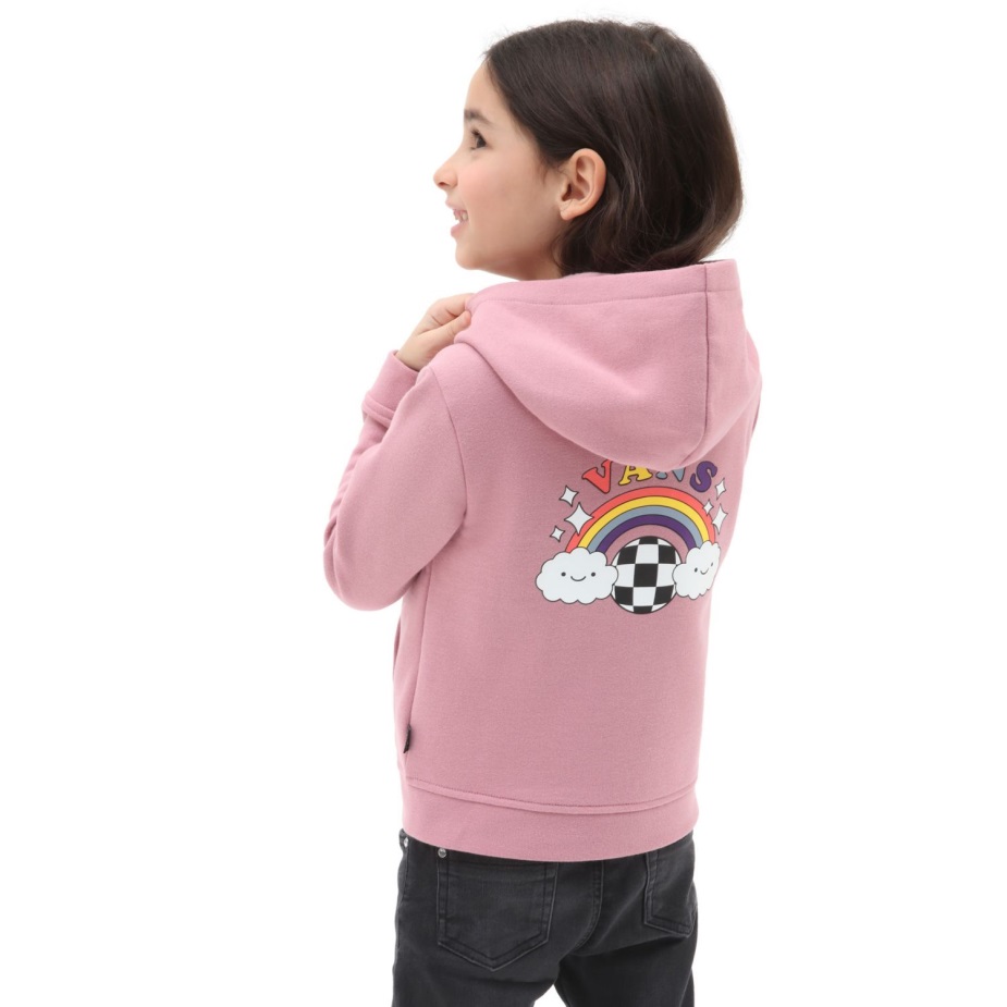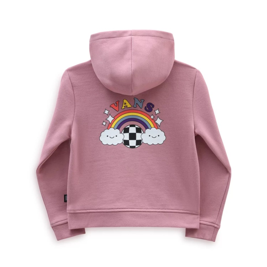 το Happy Bow Hoodie είναι ένα φούτερ με κουκούλα 60% βαμβάκι, 40% πολυεστέρας με πλήρες φερμουάρ μπροστά, κλασική εφαρμογή και χαμογελαστά στάμπα ουράνιου τόξου στο αριστερό στήθος και την πλάτη.