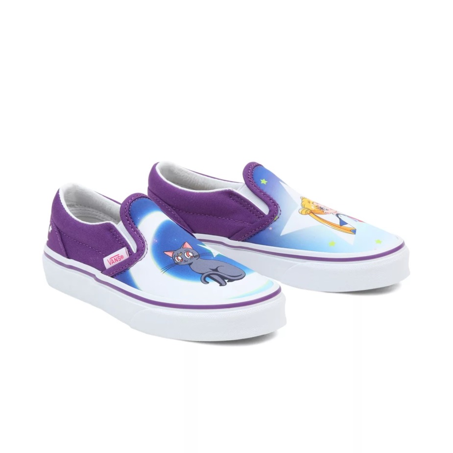 φορτηγά και όμορφος φύλακας Sailor Moon έχουν έρθει μαζί για μια ειδική συνεργασία που γιορτάζει την αγάπη και τη δικαιοσύνη για όλους. αυτή η συλλογή παπουτσιών και ενδυμάτων σας προσκαλεί να συνεργαστείτε με τους Sailor Guardians και να τιμήσετε το δημοφιλές Anime.με έργα τέχνης Usagi και Luna και λαμπερό μελάνι, τα Vans X Beautiful Guardian Sailor Moon Classic Slip-on φέρνουν τη διασκέδαση του εμβληματικού σόου σε κάθε βήμα. κατασκευασμένο με στιβαρό υφασμάτινο επάνω μέρος, αυτό το διαχρονικό Slip-on παπούτσι περιλαμβάνει επίσης υποστηρικτικούς γιακάδες, ελαστικές πλευρικές πινελιές και επώνυμες εξωτερικές σόλες από καουτσούκ βάφλα.