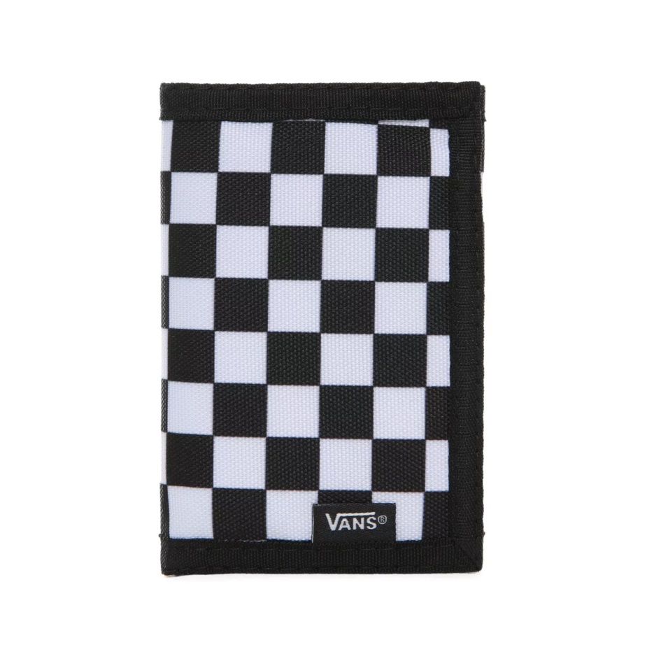 το Slipped Wallet είναι ένα τριπλό πορτοφόλι από 100% πολυεστέρα με στάμπα σκακιέρας. διαθέτει άφθονο χαρτονόμισμα, υποδοχές για κάρτες, παράθυρο ταυτότητας και τσέπη για κέρματα.