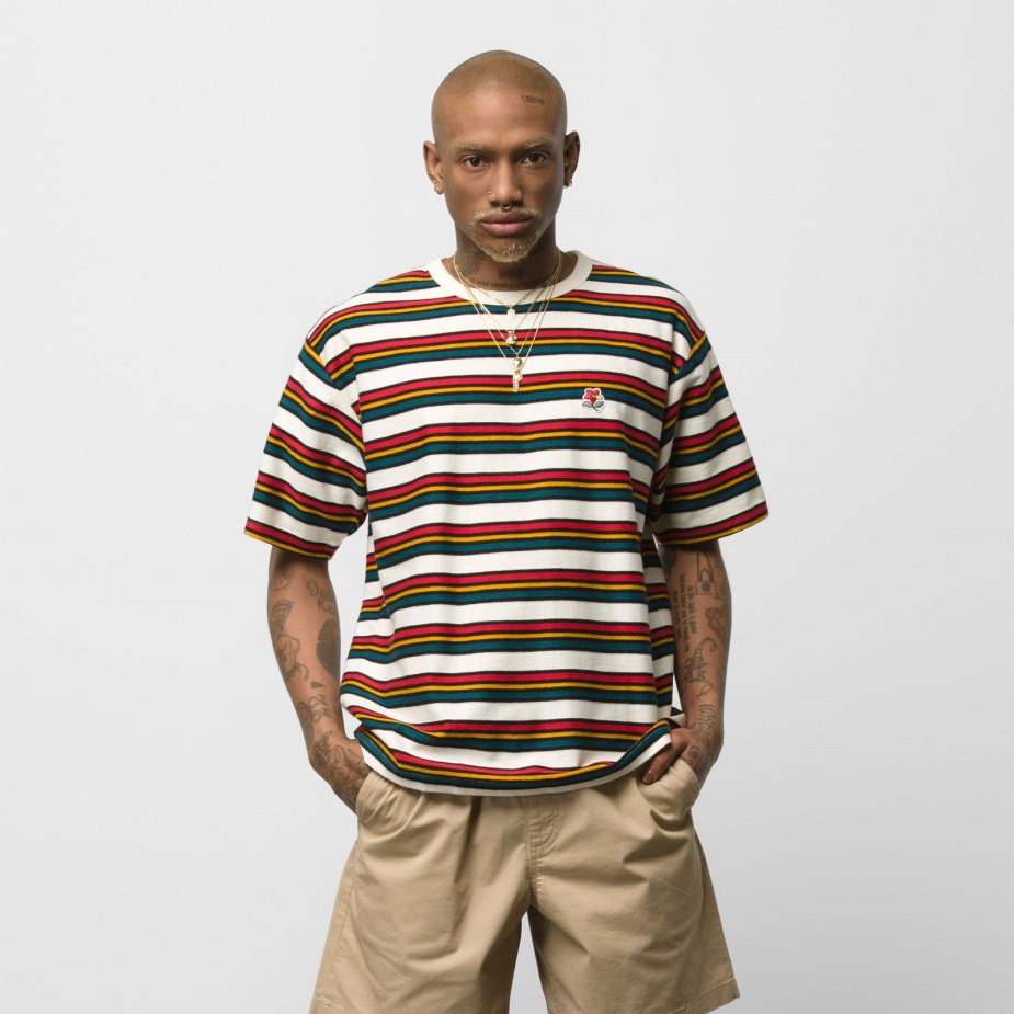 ειρήνη, αγάπη και φορτηγά. το πουκάμισο στα χέρια μας διαδίδει το θετικό μήνυμα με ζωηρές ρίγες βαμμένες από νήματα σε όλο το νήμα σε παλιά σχολικά χρώματα. φτιαγμένο από 100% οργανικό βαμβάκι ανάποδο French Terry, αυτό το κοντομάνικο μπλουζάκι διαθέτει ένα κεντημένο τριαντάφυλλο στο αριστερό στήθος για να δένει το σχέδιο μεταξύ τους. Το μοντέλο έχει ύψος 6 πόδια και φοράει μεσαίο μέγεθος. προκειμένου να μειωθεί το συνολικό αποτύπωμα των φορτηγών, η ομάδα μας έχει θέσει φιλόδοξους στόχους βιωσιμότητας. μεγάλες ή μικρές, όλες οι προσπάθειές μας συνθέτουν θετικές αλλαγές. Το Vr3 είναι η δέσμευση των φορτηγών να προμηθεύονται το 100% των κορυφαίων 4 υλικών κρούσης Co2 (βαμβάκι, δέρμα, καουτσούκ και πολυεστέρας) από αναγεννητικές, υπεύθυνες ανανεώσιμες ή/και ανακυκλωμένες πηγές μέχρι το 2030.