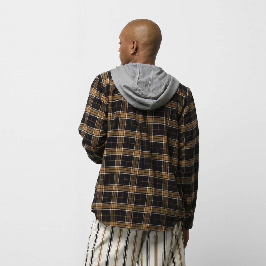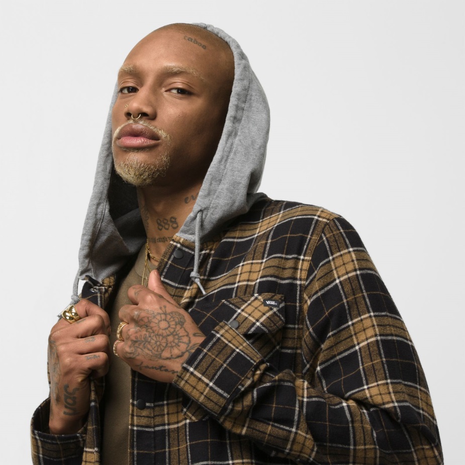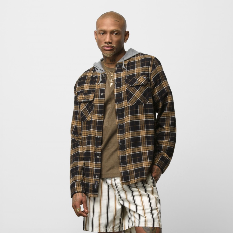 μια κουκούλα γαλλικού τύπου και βαμβακερή φανέλα καθορίζουν το πουκάμισο Parkway, ένα μακρύ μανίκι κουμπί και κλείσιμο μπροστά για κλασική, γήινη εμφάνιση. διπλές τσέπες στο στήθος με κλείσιμο με κουμπιά ολοκληρώνουν την άνετη αισθητική για δροσερό καιρό. Το μοντέλο έχει ύψος 6 πόδια και φοράει μεσαίο νούμερο.