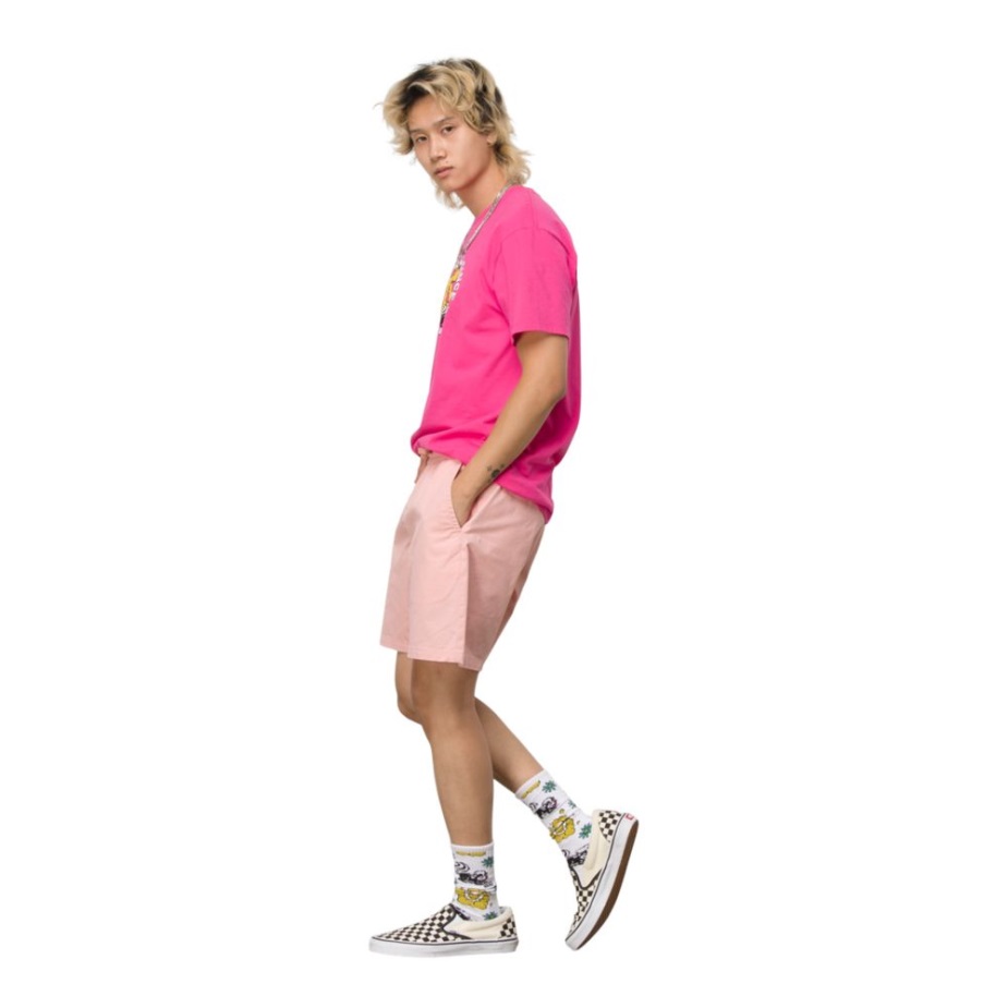 το σορτς περιπάτου είναι κατασκευασμένο από 98% βαμβάκι 2% ελαστάνη, μαλακή κατασκευή με λουστραρισμένη όψη. Αυτό το σορτς σε στυλ βόλεϊ έχει άνετη ελαστική μέση και κορδόνι, ψεύτικη μύγα και μπροστινές λοξές τσέπες στο χέρι με τσέπη για νομίσματα στη δεξιά πλευρά. κεντημένο μπαστούνι «drop-v» κάτω από τη δεξιά μπροστινή τσέπη, πίσω τσέπες με κεντημένο «drop-v» Bartack στην επάνω γωνία της αριστερής πίσω τσέπης και λεπτομέρεια κρίκου κλειδιού στη δεξιά πίσω ζώνη μέσης. χαλαρή εφαρμογή. Ραφή 18" έξω