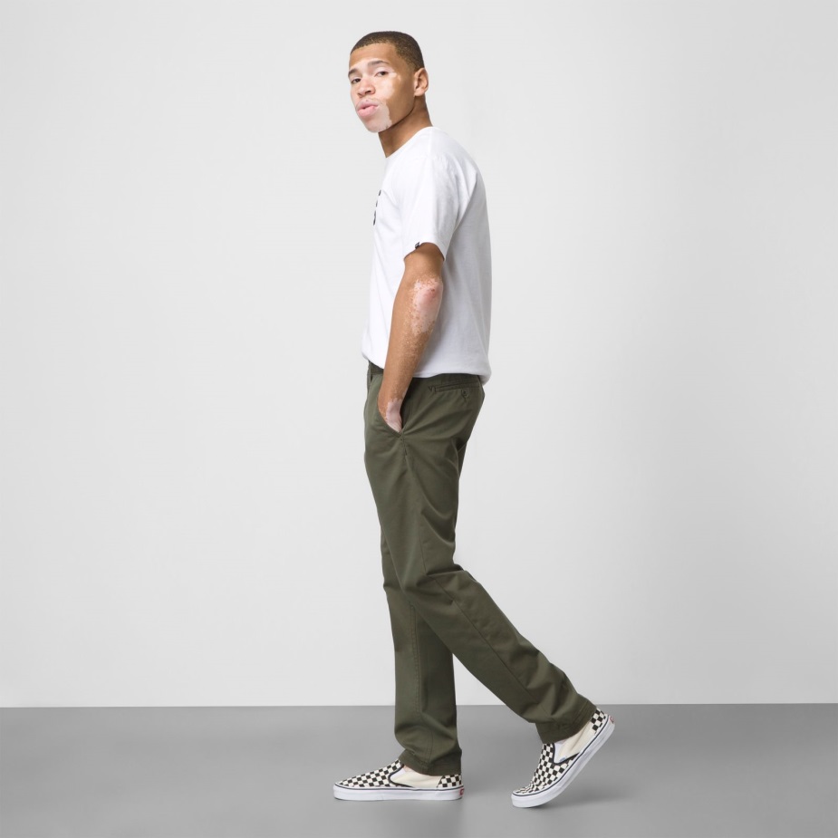 χτισμένο με βελτιωμένη, απαλή κατασκευή, αυτό το κλασικό παντελόνι Chino διαθέτει μπροστινό χέρι τσέπες με τοποθέτηση νέας τσέπης για νομίσματα στα δεξιά, πίσω τσέπες με κούμπωμα με κλείσιμο με κουμπιά και κεντημένες ράβδους Drop V για ενίσχυση με κληρονομική περιστροφή. Επιπλέον, οι νέες λεπτομέρειες φέρνουν άφθονο στυλ τοίχου σε αυτό το απαραίτητο πατίνι, συμπεριλαμβανομένης της νέας λεπτομέρειας της ζώνης "v" στην πίσω ζώνη, της νέας ταινίας σκακιέρας στην εσωτερική μύγα που βλέπει και της νέας ετικέτας σημαίας ραμμένη εσωτερικά στο ραφή στρίφωμα για πρόσθετη επωνυμία όταν τα πόδια έχουν χειροπέδες.