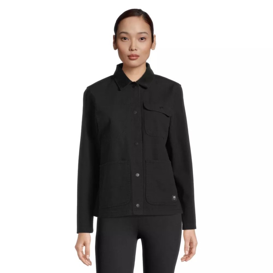 το τζάκετ αγγαρείας τύπου Vans είναι ένα παλτό από 100% βαμβακερό καμβά με κοτλέ γιακά, τσέπες με μπαλώματα, πατιλέτα με κουμπιά μπροστά και υφαντό έμπλαστρο με λογότυπο.