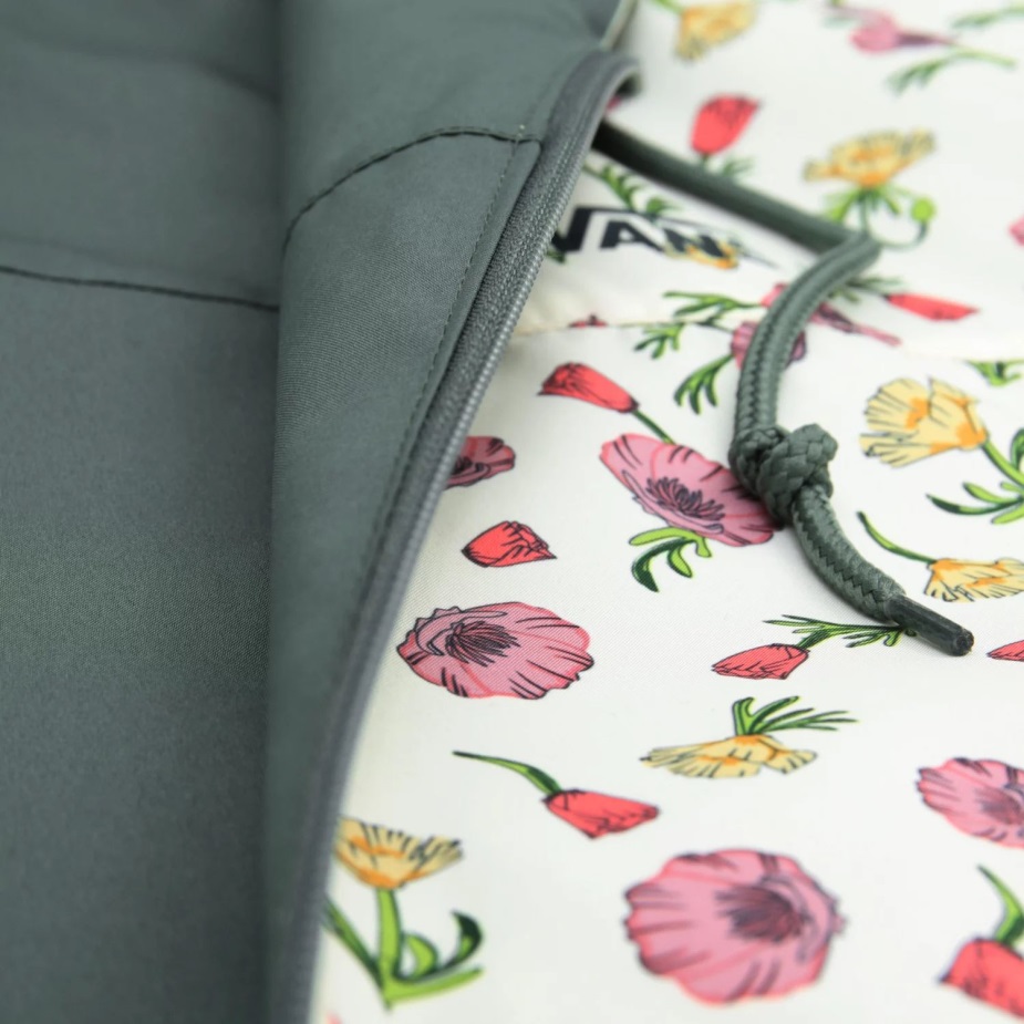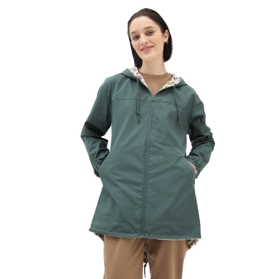 το Vans Mercy Reversible Parka Jacket είναι αναστρέψιμο με μπροστινό φερμουάρ. Διαθέτει επίσης κορδόνι στην κουκούλα και στο πίσω μέρος, διαθέτει ανθεκτική υδατοαπωθητική επίστρωση (dwr) και το λογότυπο του φορτηγού στο στήθος. έχει λουλουδένιο τύπωμα σε όλη τη μία πλευρά και μονόχρωμο στην άλλη.