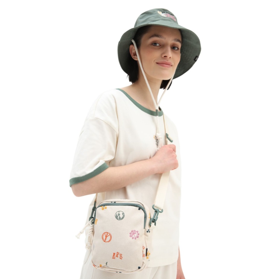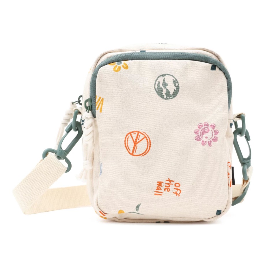 ειρήνη, αγάπη και φορτηγά. το στα χέρια μας Go Getter Crossbody διαδίδει το θετικό μήνυμα με παντού γραφικά με σύμβολα ειρήνης και πλανήτη γη. φτιαγμένη από οργανικό βαμβάκι, αυτή η μοντέρνα τσάντα από καμβά περιλαμβάνει επίσης ένα ρυθμιζόμενο λουράκι, μια εξωτερική τσέπη με φερμουάρ, μια πίσω τσέπη και μια ετικέτα με λογότυπο.