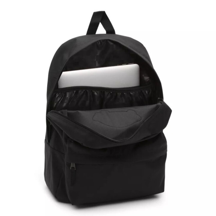 το σακίδιο πλάτης είναι ένα σακίδιο πλάτης από 100% βαμβάκι με δύο τσέπες με επένδυση και φόδρα από 100% πολυεστέρα, κύρια θήκη με φερμουάρ με εσωτερικό μανίκι φορητού υπολογιστή, μπροστινή τσέπη οργάνωσης, ρυθμιζόμενα λουριά με επένδυση και ανάγλυφη επένδυση στο εσωτερικό πίσω πάνελ. διαστάσεων 16,75 L X 12,75 W X 4,75 D ίντσες, έχει χωρητικότητα 22 λίτρων.