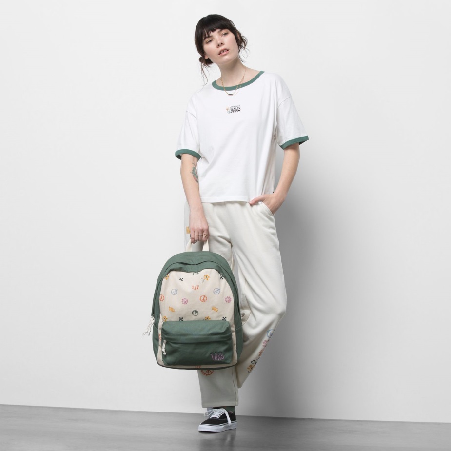 ειρήνη, αγάπη και φορτηγά. το σακίδιο από καμβά στα χέρια μας διαδίδει το θετικό μήνυμα με μια στάμπα στο μπροστινό μέρος που προβάλλει σύμβολα ειρήνης και πλανήτη γη. Με κύρια θήκη με φερμουάρ και εσωτερικό μανίκι για φορητό υπολογιστή, μπροστινή τσέπη με Organizer για να κρατάτε τα σημαντικά σας αντικείμενα τακτοποιημένα και ρυθμιζόμενους ιμάντες ώμου με επένδυση, αυτό το κλασικό σακίδιο είναι έτοιμο για όλα. Τα υπερυψωμένα φερμουάρ και το κέντημα με το λογότυπο της μπροστινής τσέπης φέρνουν μια πινελιά στον τοίχο σε αυτό το εμβληματικό σχέδιο.