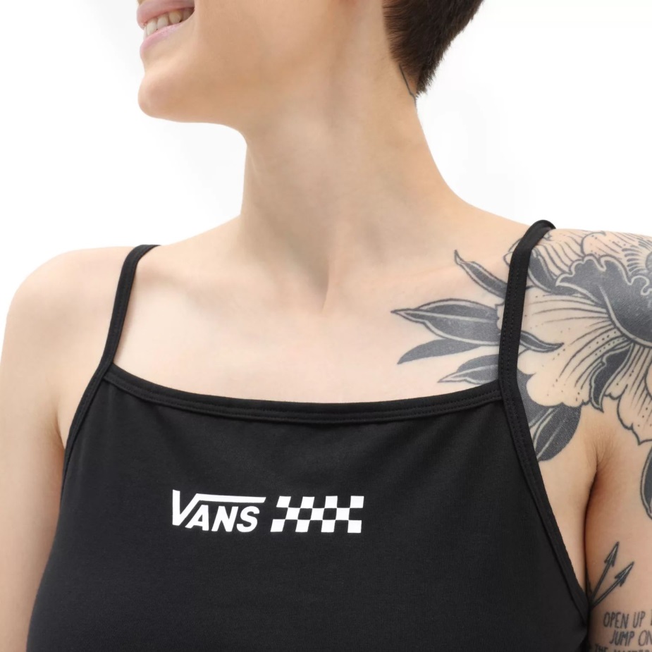 απλώνεται εύκολα ή φοριέται μόνο του, το σούπερ διασκεδαστικό φόρεμα Skater είναι ένα κλασικό φόρεμα Cami Skater σε γραμμή με ρυθμιζόμενα λουράκια σπαγγέτι και λογότυπο και στάμπα σκακιέρας στο κέντρο μπροστά.
