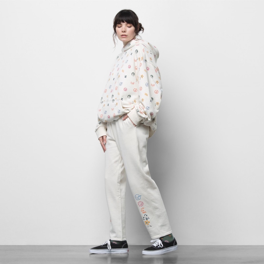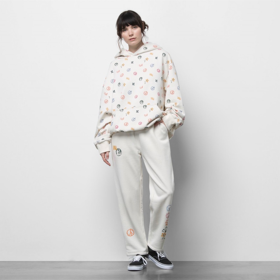 ειρήνη, αγάπη και φορτηγά. το αθλητικό παντελόνι στα χέρια μας διαδίδει το θετικό μήνυμα με γραφικά με τυπωμένα σε οθόνη που απεικονίζουν σύμβολα ειρήνης και πλανήτη γη. Φτιαγμένο με μείγμα οργανικού βαμβακιού και ανακυκλωμένου πολυεστέρα, αυτό το απαλό αθλητικό παντελόνι διαθέτει ελαστική μέση που τραβιέται εύκολα, χωρίς πλευρικές ραφές και χαλαρή εφαρμογή. Το μοντέλο έχει ύψος 5 πόδια 9 ίντσες, μέση 23 ιντσών και φοράει μέγεθος 26. Για να μειώσει το συνολικό αποτύπωμα των φορτηγών, η ομάδα μας έχει θέσει φιλόδοξους στόχους βιωσιμότητας. μεγάλες ή μικρές, όλες οι προσπάθειές μας συνθέτουν θετικές αλλαγές. Το Vr3 είναι η δέσμευση των φορτηγών να προμηθεύονται το 100% των κορυφαίων 4 υλικών κρούσης Co2 (βαμβάκι, δέρμα, καουτσούκ και πολυεστέρας) από αναγεννητικές, υπεύθυνες ανανεώσιμες ή/και ανακυκλωμένες πηγές μέχρι το 2030.