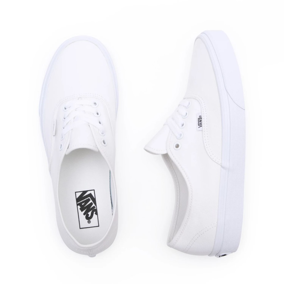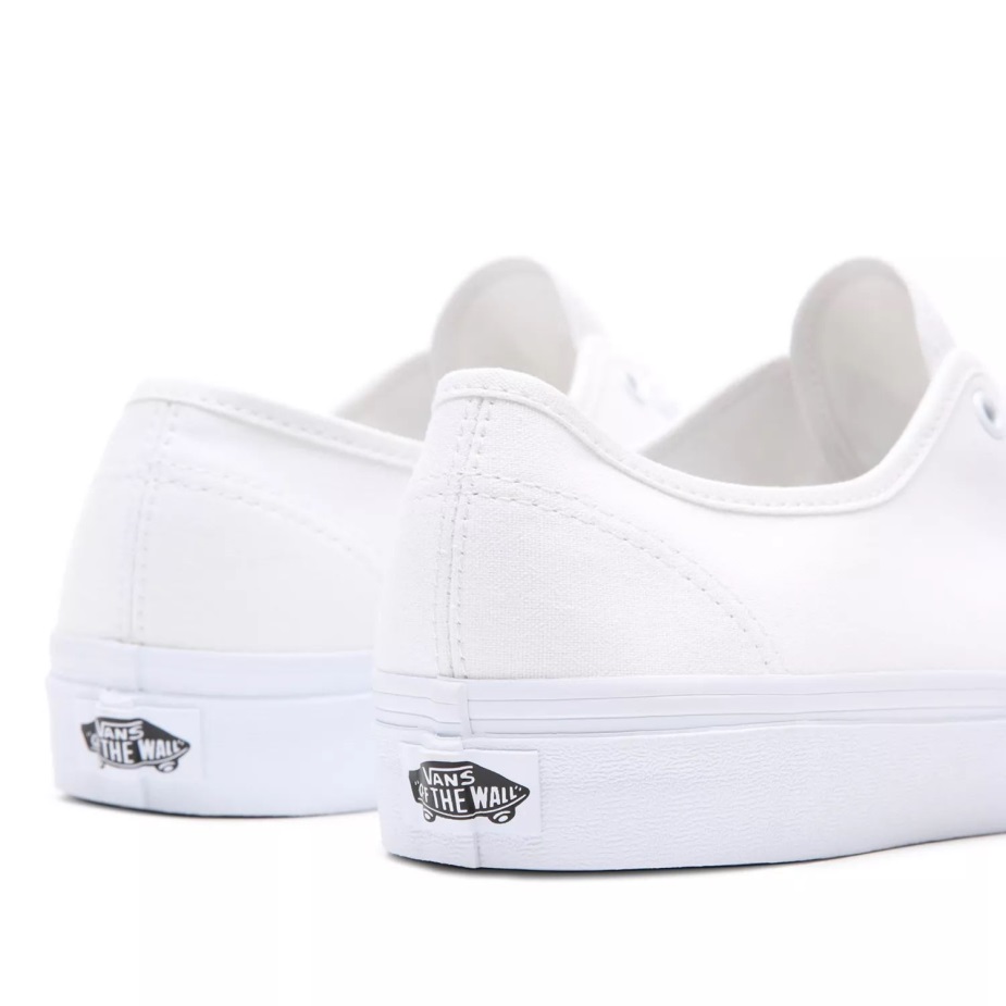 το Vans Authentic είναι παπούτσι με κορδόνια, χαμηλό επάνω μέρος με κλασικές ραφές, επωνυμία σημαίας και σόλα με νήμα βάφλας για πιο σταθερό κράτημα.