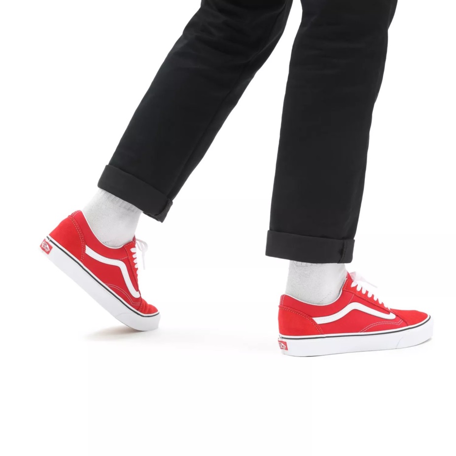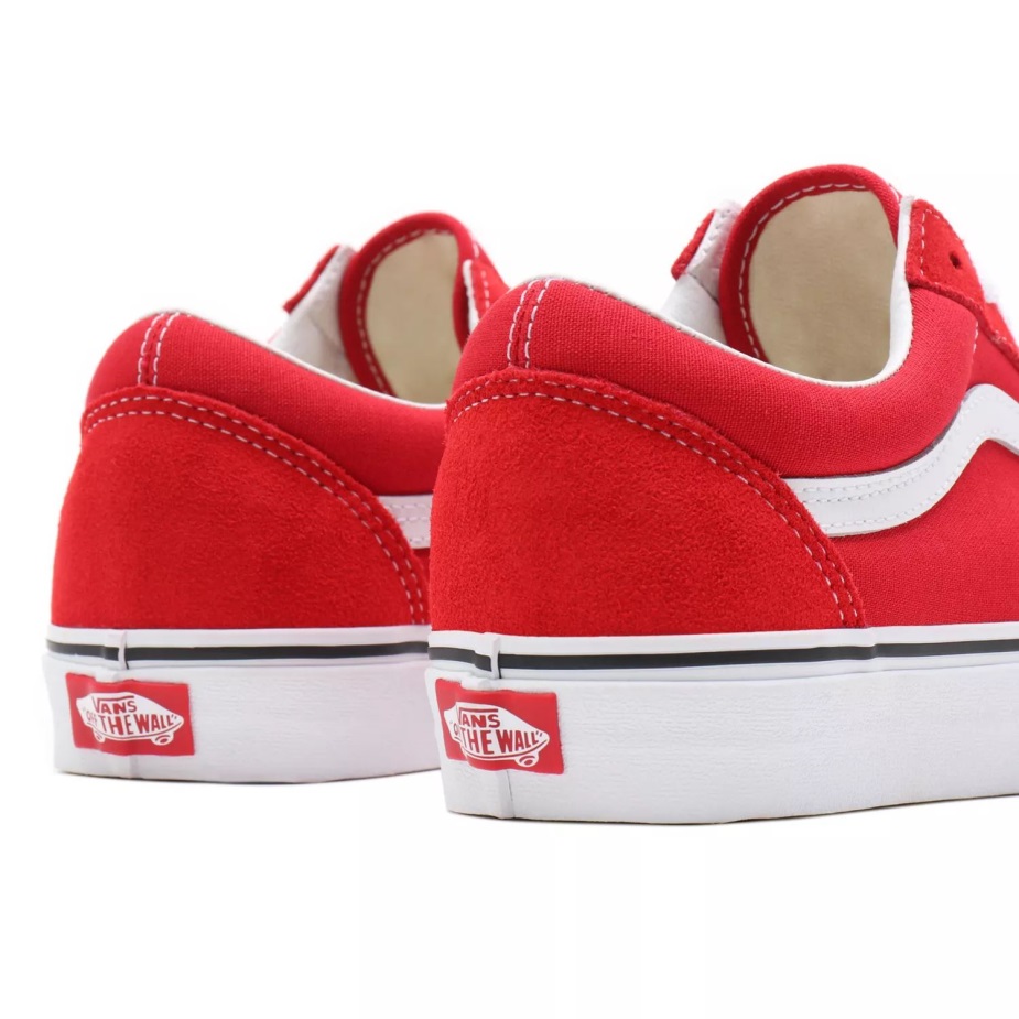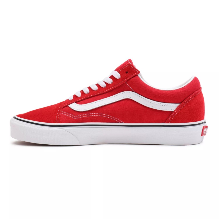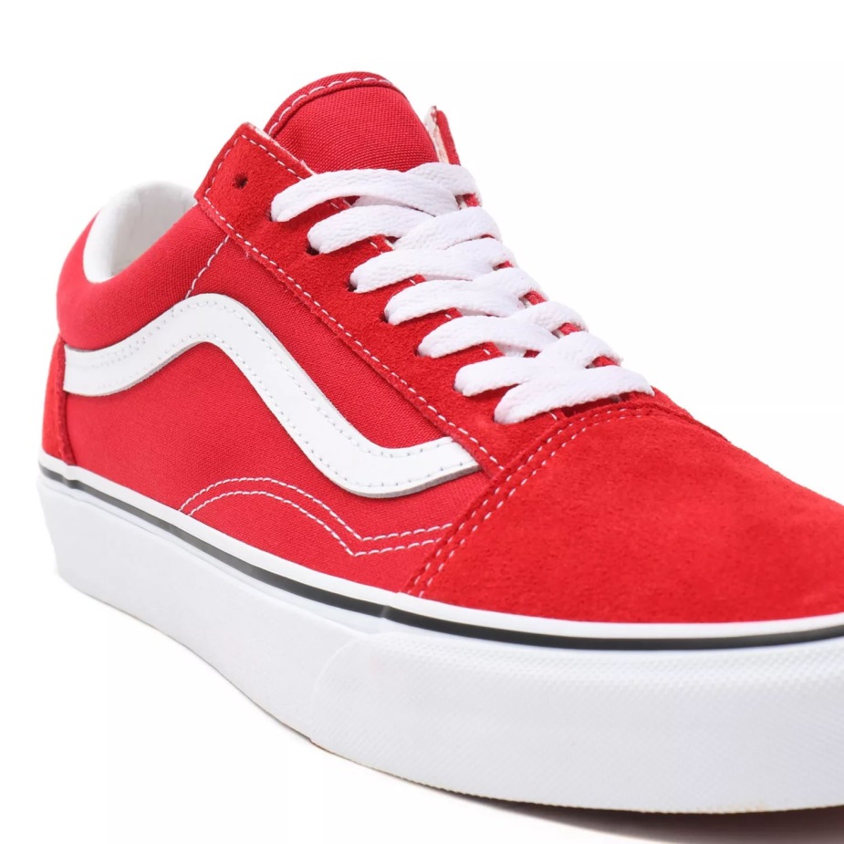 το παλιό Skool, το κλασικό παπούτσι για Skate Vans και το πρώτο που ξεγύμνωσε το εμβληματικό πλαϊνό λωρίδα, είναι ένα χαμηλό κορδόνι με στιβαρό καμβά και σουέτ επάνω μέρος, ενισχυμένα καλύμματα στα δάχτυλα για να αντέχουν την επαναλαμβανόμενη φθορά, γεμισμένους γιακά για στήριξη και ευελιξία και υπογραφή Εξωτερικές σόλες από καουτσούκ βάφλα.