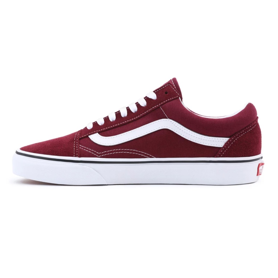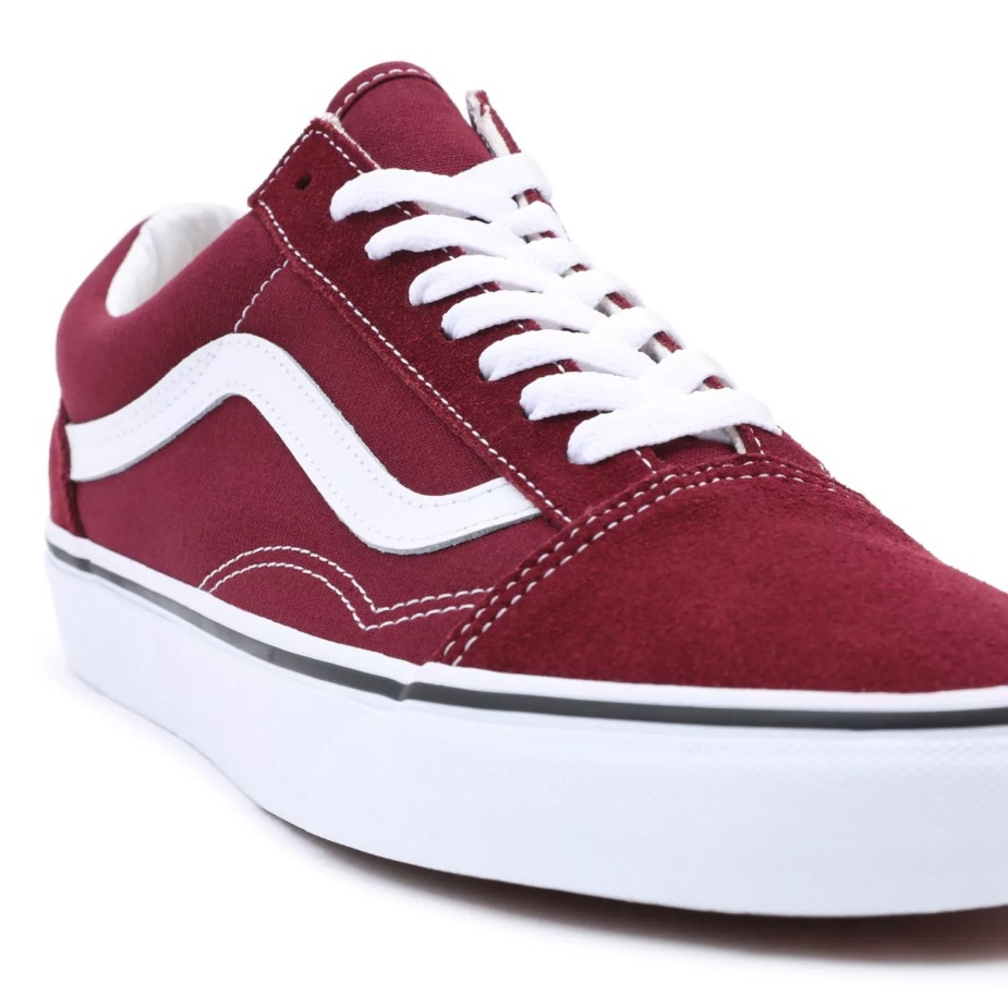 το παλιό Skool, το κλασικό παπούτσι για Skate Vans και το πρώτο που ξεγύμνωσε το εμβληματικό πλαϊνό λωρίδα, είναι ένα χαμηλό κορδόνι με στιβαρό καμβά και σουέτ επάνω μέρος, ενισχυμένα καλύμματα στα δάχτυλα για να αντέχουν την επαναλαμβανόμενη φθορά, γεμισμένους γιακά για στήριξη και ευελιξία και υπογραφή Εξωτερικές σόλες από καουτσούκ βάφλα.