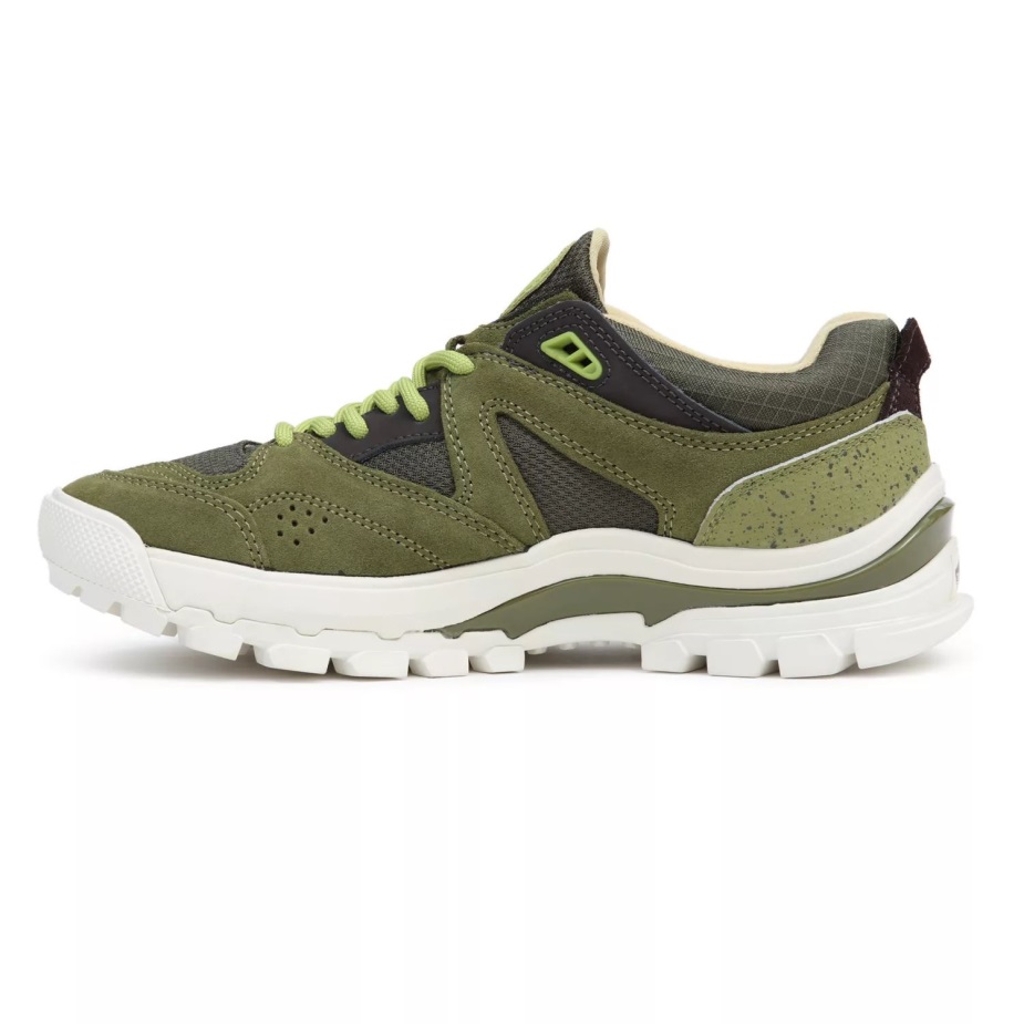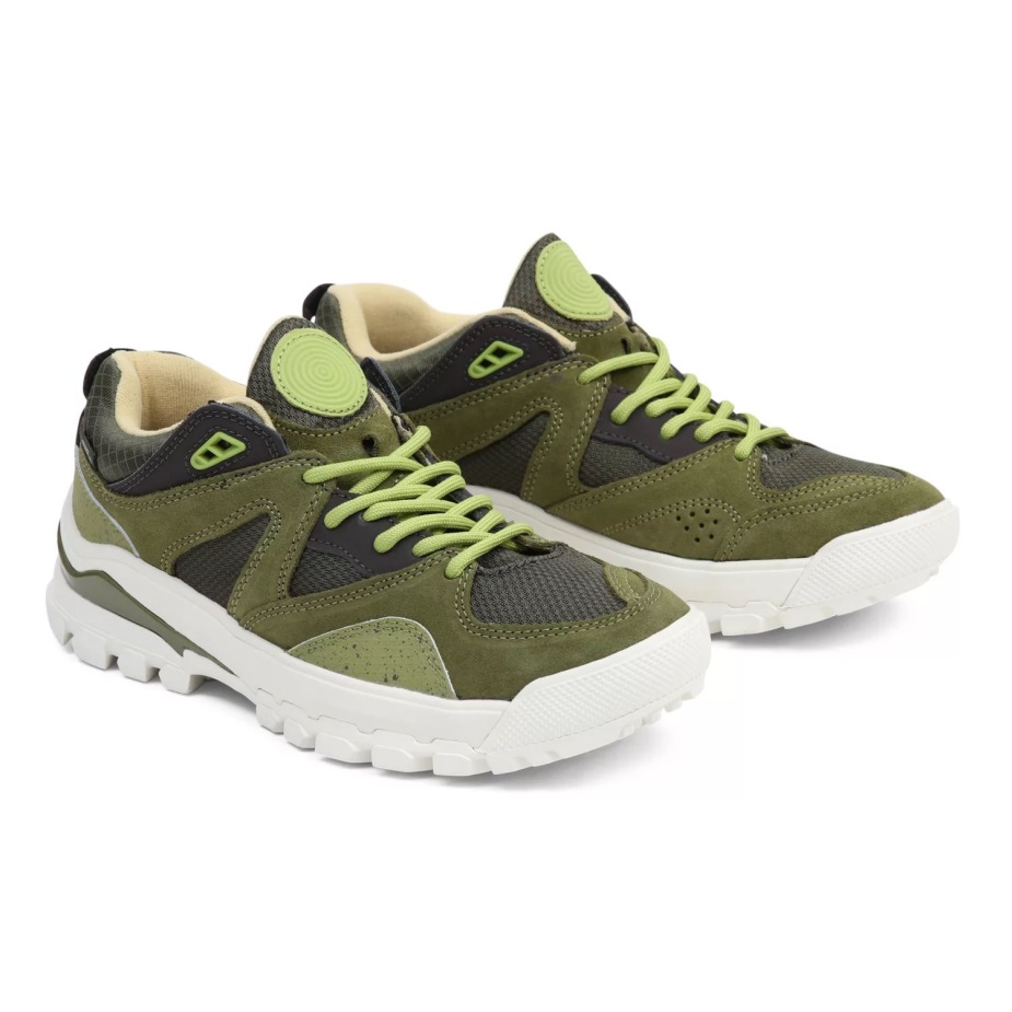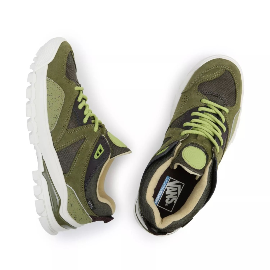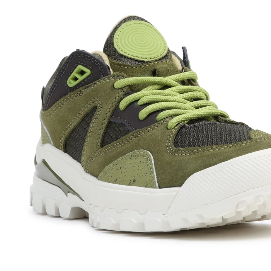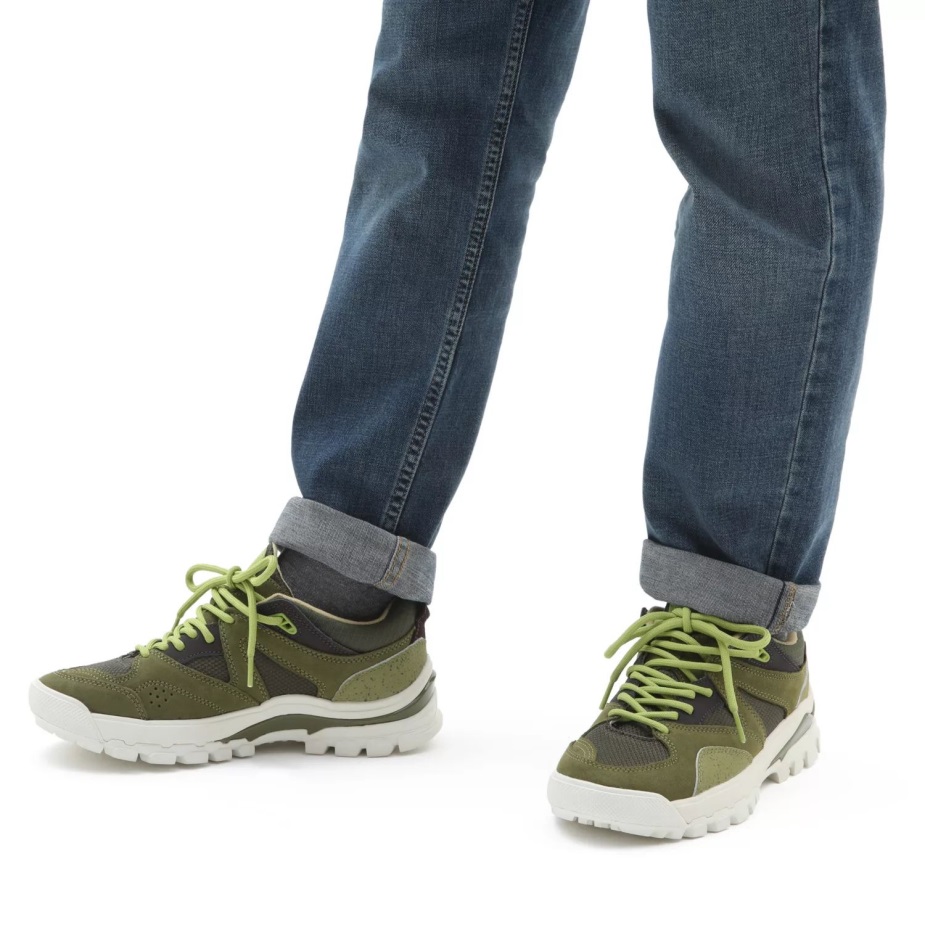 τα παπούτσια Vans Amzn Trailhead είναι ένα χαμηλό κορδόνι με μια σόλα Ultracush για επιπλέον αντικραδασμική προστασία και ανάκαμψη, και μια συνδυασμένη εξωτερική σόλα με ενσωματωμένο κλιπ φτέρνας για ανθεκτικότητα και λειτουργικότητα. τα παπούτσια διαθέτουν επίσης σχεδιασμό εξωτερικής σόλας με έλξη για το χειρισμό ανώμαλου εδάφους.