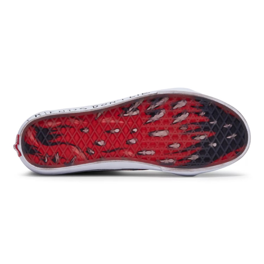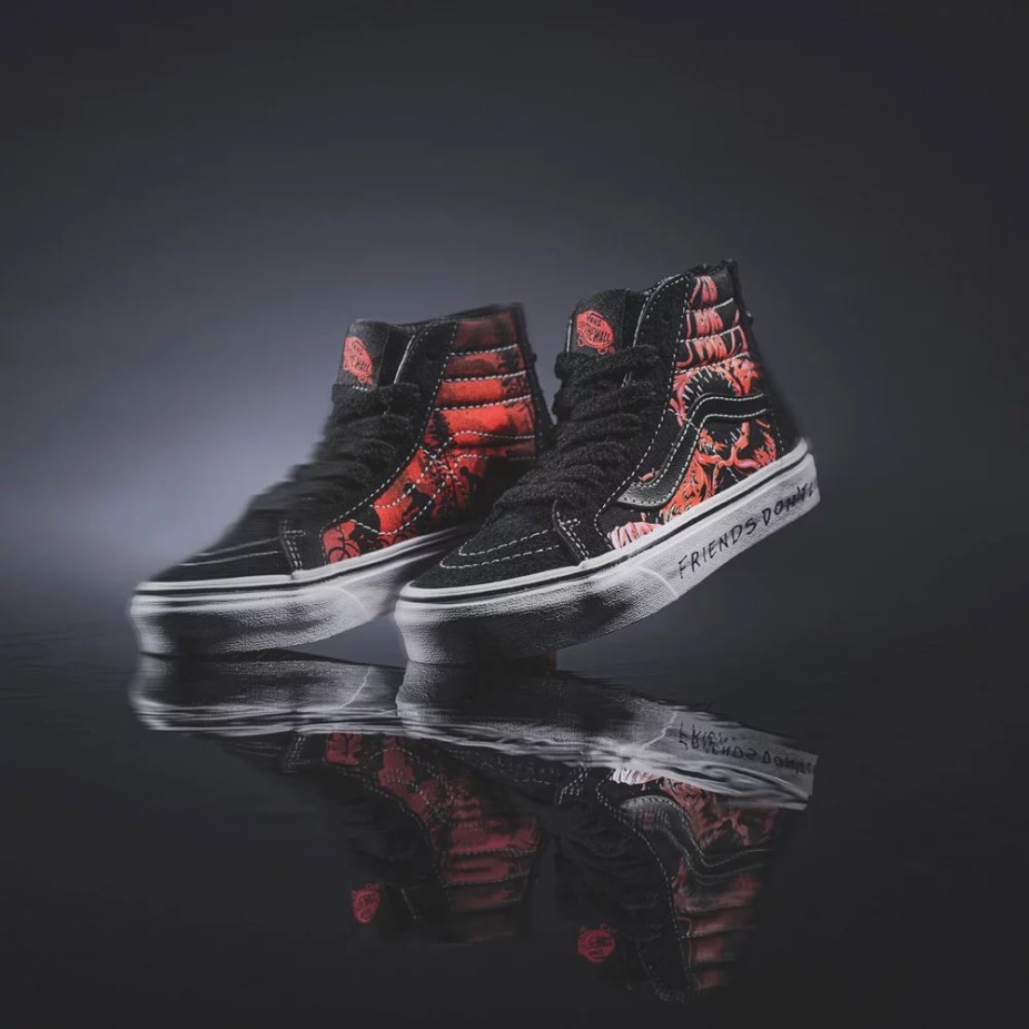 η συλλογή Vans X Stranger Things 4 ζωντανεύει τον κόσμο των ξένων πραγμάτων. Ταξιδέψτε στην ανάποδη, πίτσα σερφερ Boy, Hawkins Indiana και πολλά άλλα μέσα από παιχνιδιάρικα ρούχα και υποδήματα των βαν. με γραφικά Demogorgon και κόκκινο και μαύρο χρώμα που τιμά τους εμβληματικούς τίτλους έναρξης της σειράς, τα Vans X ξένα πράγματα Sk8-hi επανέκδοση συνδυάζει μας θρυλικό ψηλό παπούτσι με το αυθεντικό τέρας να στοιχειώνει τους ήρωες των Hawkins. μαζί με μια στάμπα "friends Don't Lie" στα πλευρικά τοιχώματα, αυτή η πλευρική σιλουέτα περιλαμβάνει υποστηρικτικούς γιακάδες και επώνυμες εξωτερικές σόλες από καουτσούκ βάφλα, διασφαλίζοντας ότι είστε πάντα έξω από τον τοίχο και ανάποδα, έτοιμοι για την επόμενη επική σας περιπέτεια. η ομάδα των καλύτερων φίλων σας, μια βάφλα (σόλα) και ετοιμαστείτε να οδηγηθείτε στον κόσμο των φορτηγών X ξένων πραγμάτων 4.