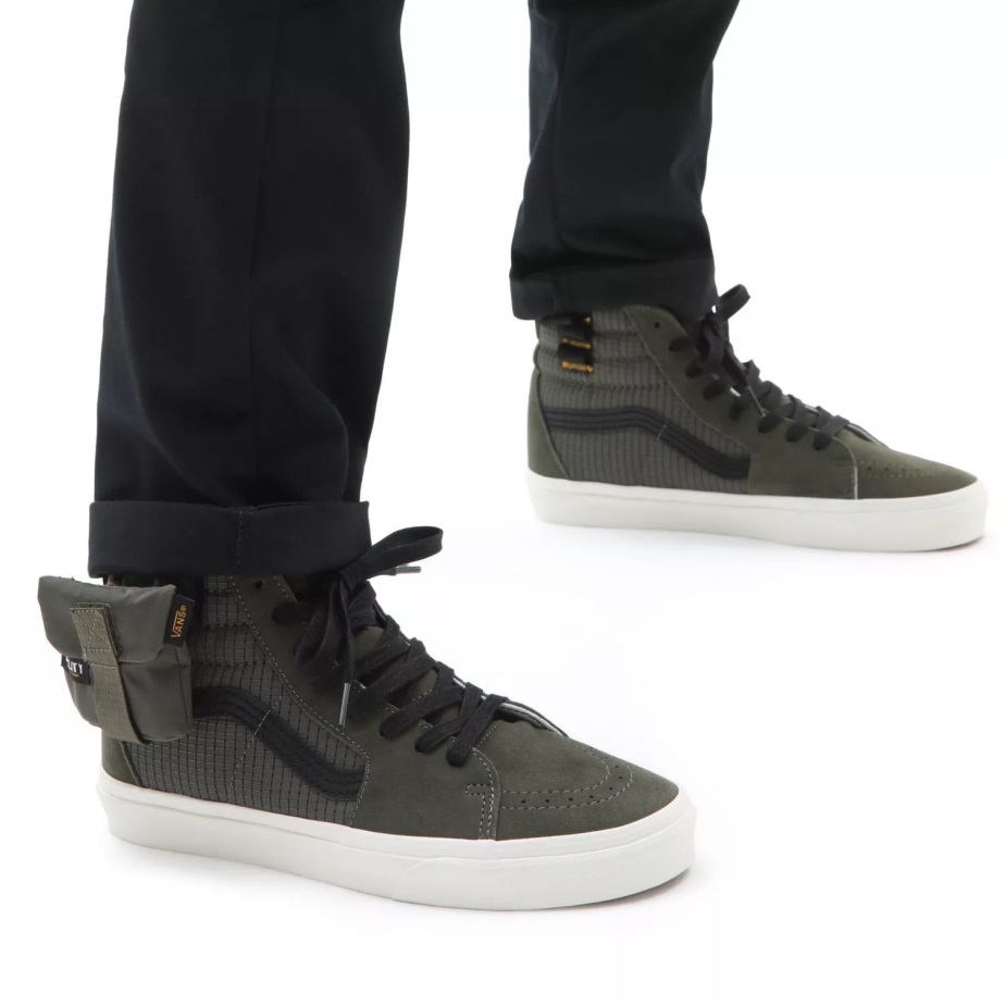 Ένα ελαφρύ, κορδόνι, ψηλό παπούτσι, τα παπούτσια Vans Sk8-hi Cmty διαθέτουν αντικραδασμική προστασία στη φτέρνα για επιπλέον άνεση, ενισχυμένα καλύμματα στα δάχτυλα για ανθεκτικότητα και γιακά με επένδυση για άνεση. Οι επώνυμες εξωτερικές σόλες από καουτσούκ βάφλα δίνουν σε αυτό το παπούτσι πιο σταθερό κράτημα και οι αφαιρούμενες τσέπες στα πλαϊνά πάνελ φέρνουν επιπλέον στυλ.