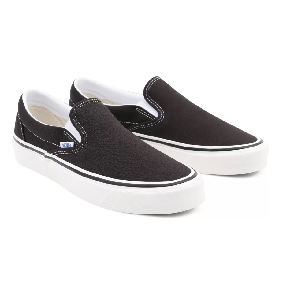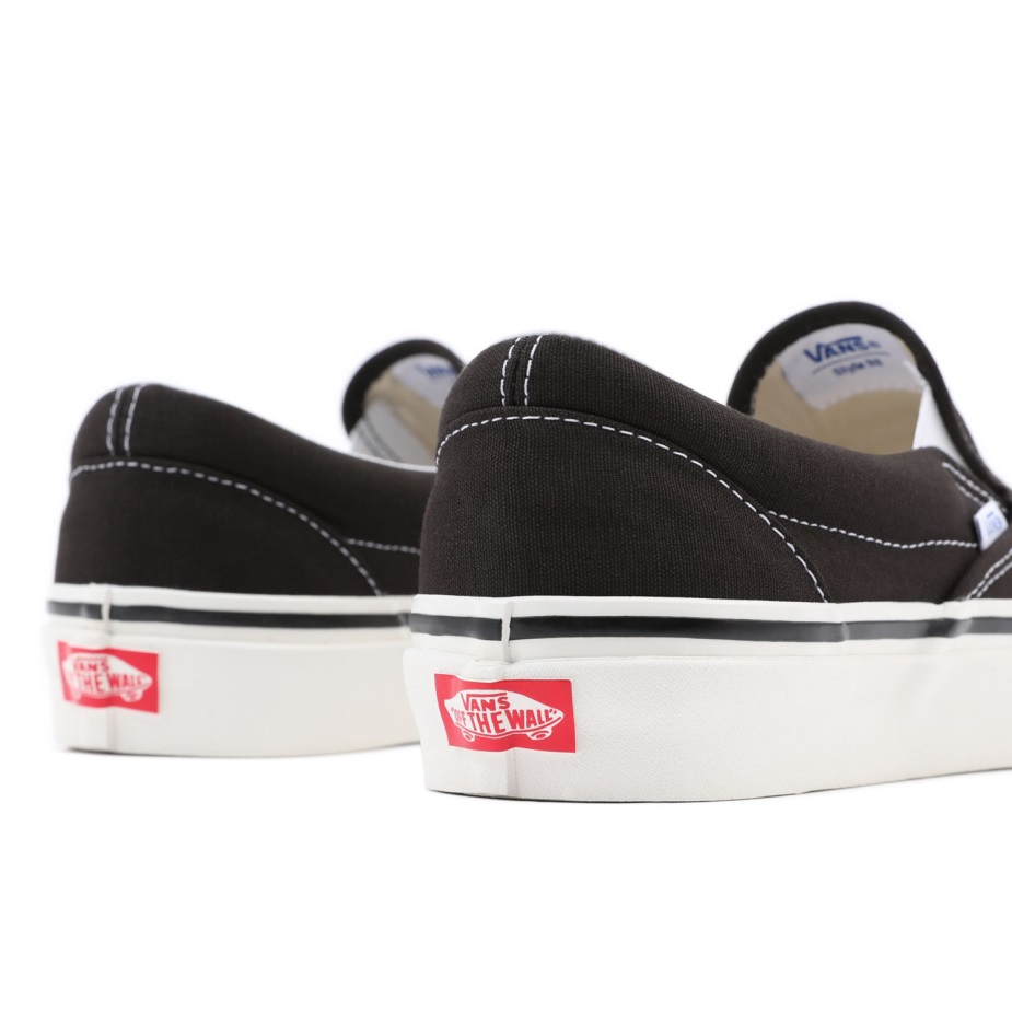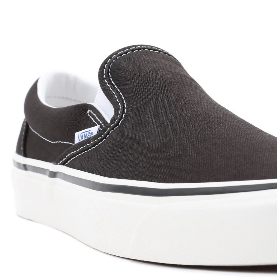 το εργοστασιακό κλασικό Slip-on 98 Dx Anaheim περιλαμβάνει εκσυγχρονισμένη άνεση με αναβαθμισμένες κάλτσες Ultracush. Διαθέτει επίσης αναδρομικές λεπτομέρειες, όπως τον αρχικό αριθμό στυλ και την παλέτα χρωμάτων ή εκδοθείσες εκτυπώσεις, μεγαλύτερη γυαλιστερή ταινία Foxing, αυθεντικό βάρος επένδυσης τρυπανιού και ανθεκτικό υφασμάτινο επάνω μέρος για να ολοκληρώσει την εμφάνιση.